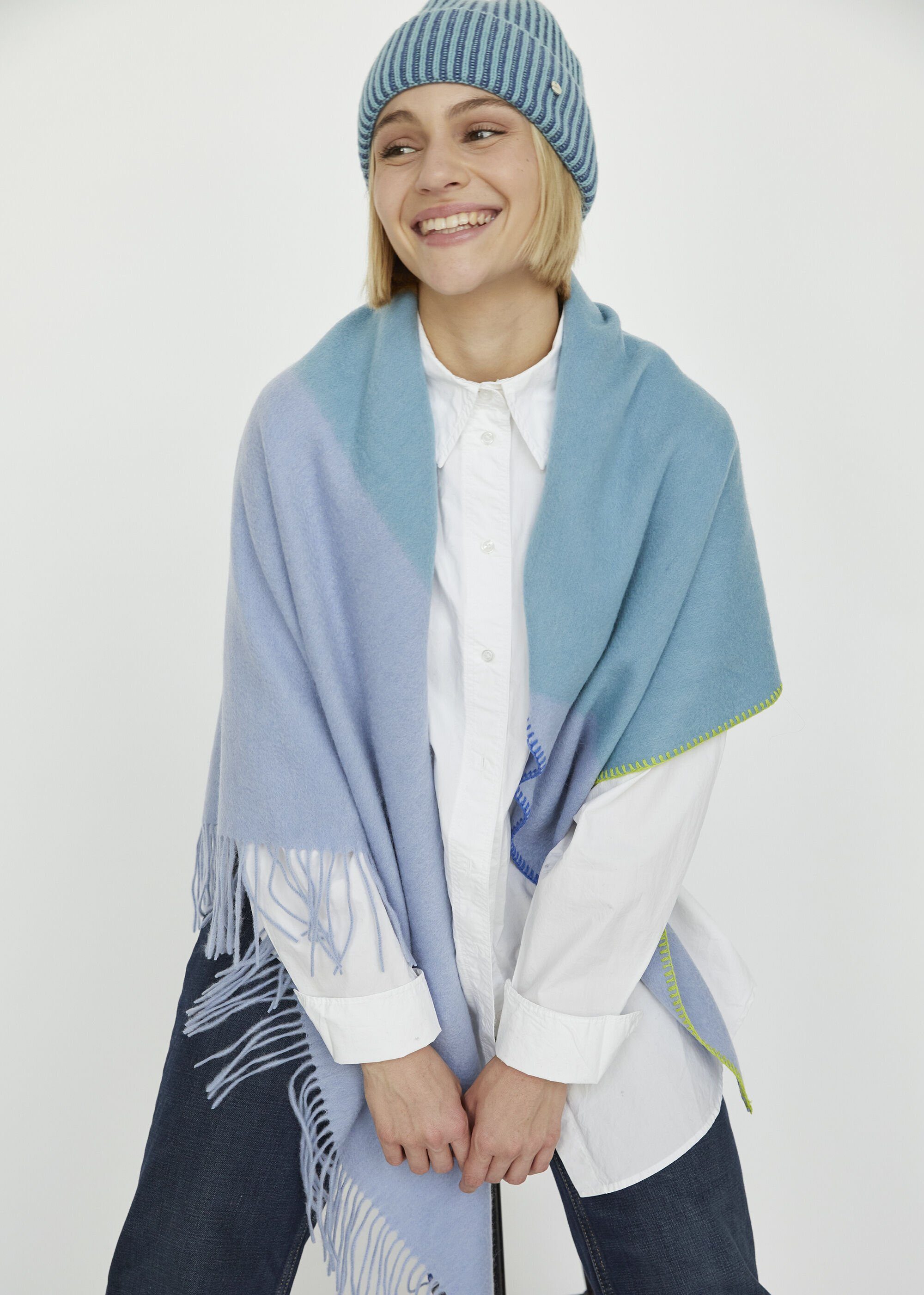 Dieses edle Dreieckstuch im modernen Colour Blocking Design wurde in einer traditionellen mongolischen Weberei gefertigt. Das Triangle aus #17 LUXURY WOOL wird höchsten Ansprüchen gerecht und überzeugt durch einen exklusiven, weichen Griff und einen hohen Tragekomfort. Schon an den ersten kühlen Tagen kannst du das wärmende Triangle Tuch aus gewalkter Wolle mit wertvoller Handstickerei als Alternative zu Jacken und Mänteln tragen. An kalten Wintertagen ist das Multifunktionstuch ein cosy Accessoire, um dich zuhause oder im Büro warm einzukuscheln.