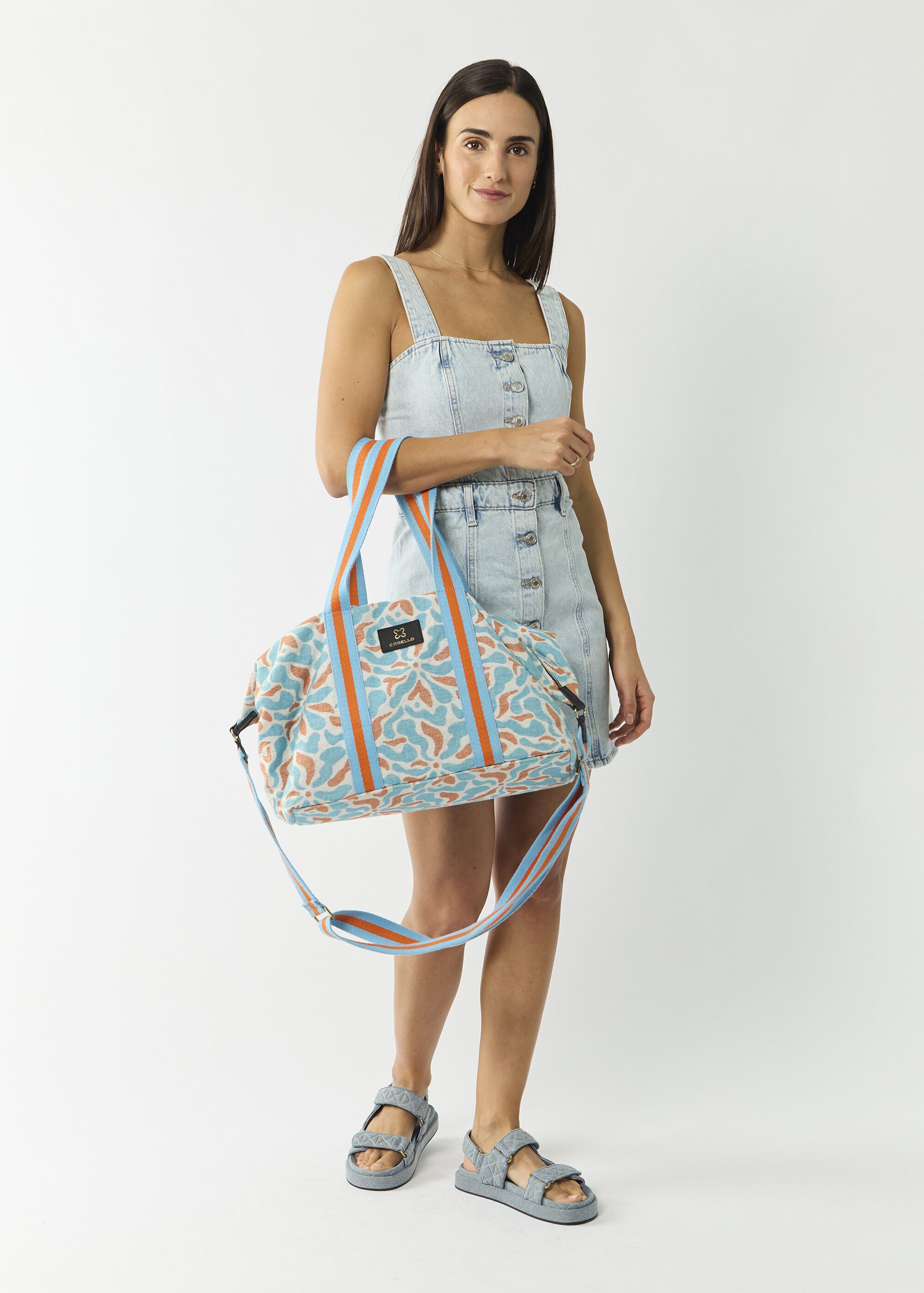 Fashionistas sind auch auf Daily Trips gerne stylisch unterwegs. Darum haben wir jetzt unseren Weekender in einem kleineren Format für euch designt. Die Reisetasche wurde in einer Manufaktur in Indien, in der die Jacquard-Weberei eine lange Tradition hat, mit farbigem Muster gefertigt. Der Weekender ist aus robustem und strapazierfähigem Baumwoll-Canvas hergestellt. Das langlebige Material und Details aus echtem Leder erfüllen unsere hohen Ansprüche an Qualität und Design.
