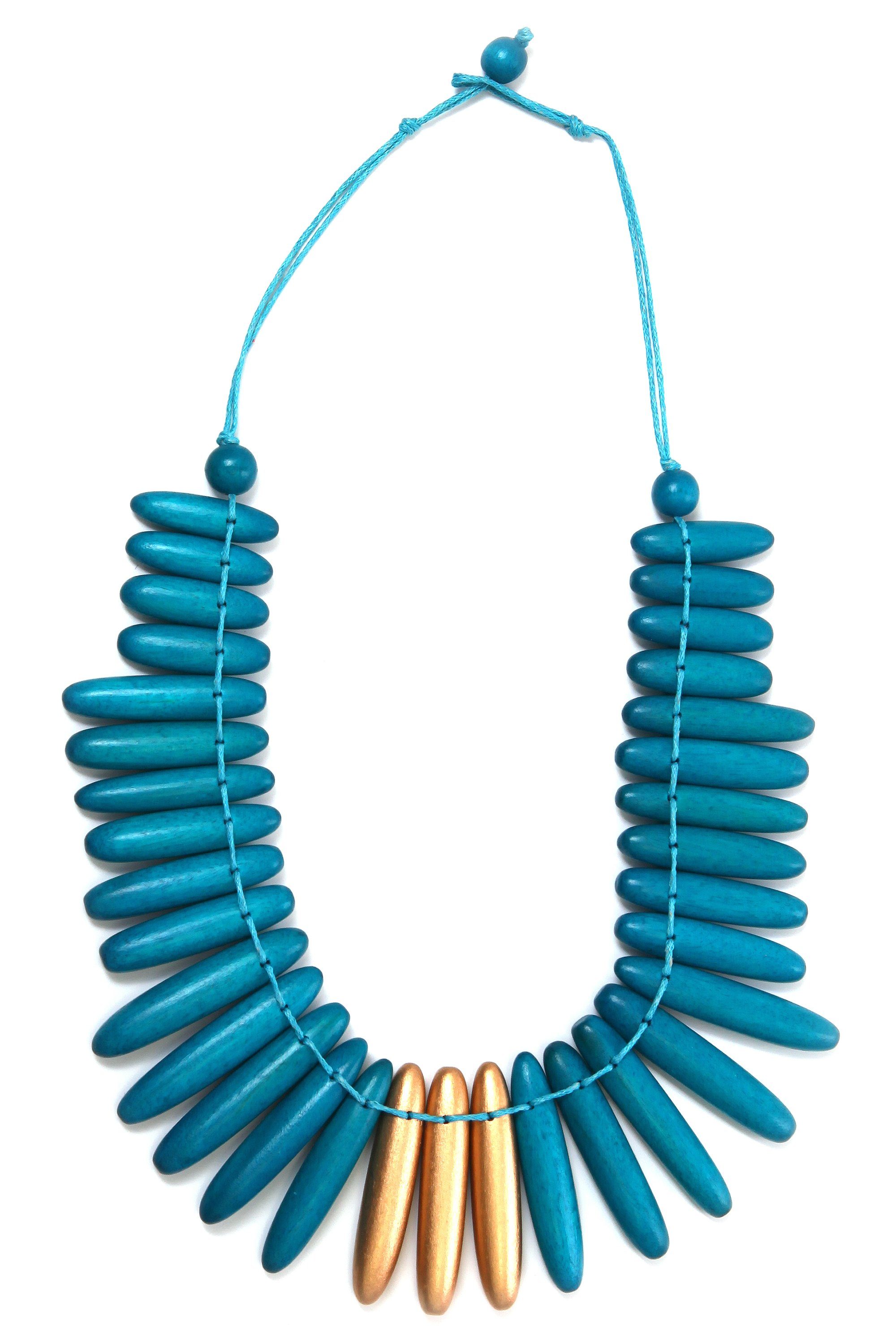 An dieser stylischen Kette aus Holz kommen Sie nicht vorbei. Die kurze Halskette schmiegt sich an Ihren Hals und lässt Sie perfekt für alle Gelegenheiten aussehen. Die elegante Holz-Kette ist ein Unikat, jede Kette wird in liebevoller Handarbeit hergestellt und kann unterschiedlich ausfallen. Die wunderschöne Kette aus Echt Holz wird ihren natürlichen Stil unterstreichen. Erhältlich in türkis und orange.