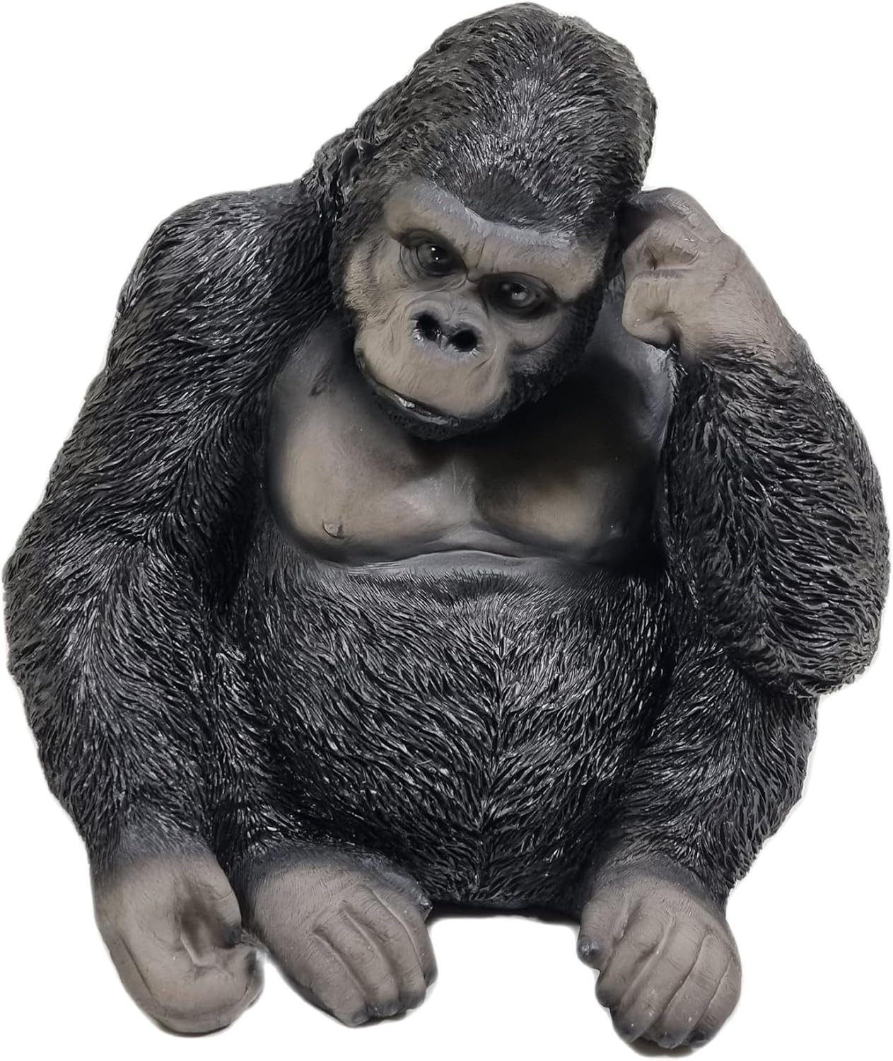 Unsere tolle Dekofigur Gorilla "Enrico" ist aus hochwertigem Polyresin gefertigt und beeindruckt mit ihrer Detailtreue und realistischen Darstellung. Die Figur zeigt einen Gorilla, der sich nachdenklich am Kopf kratzt, wodurch eine charmante und menschenähnliche Pose entsteht.