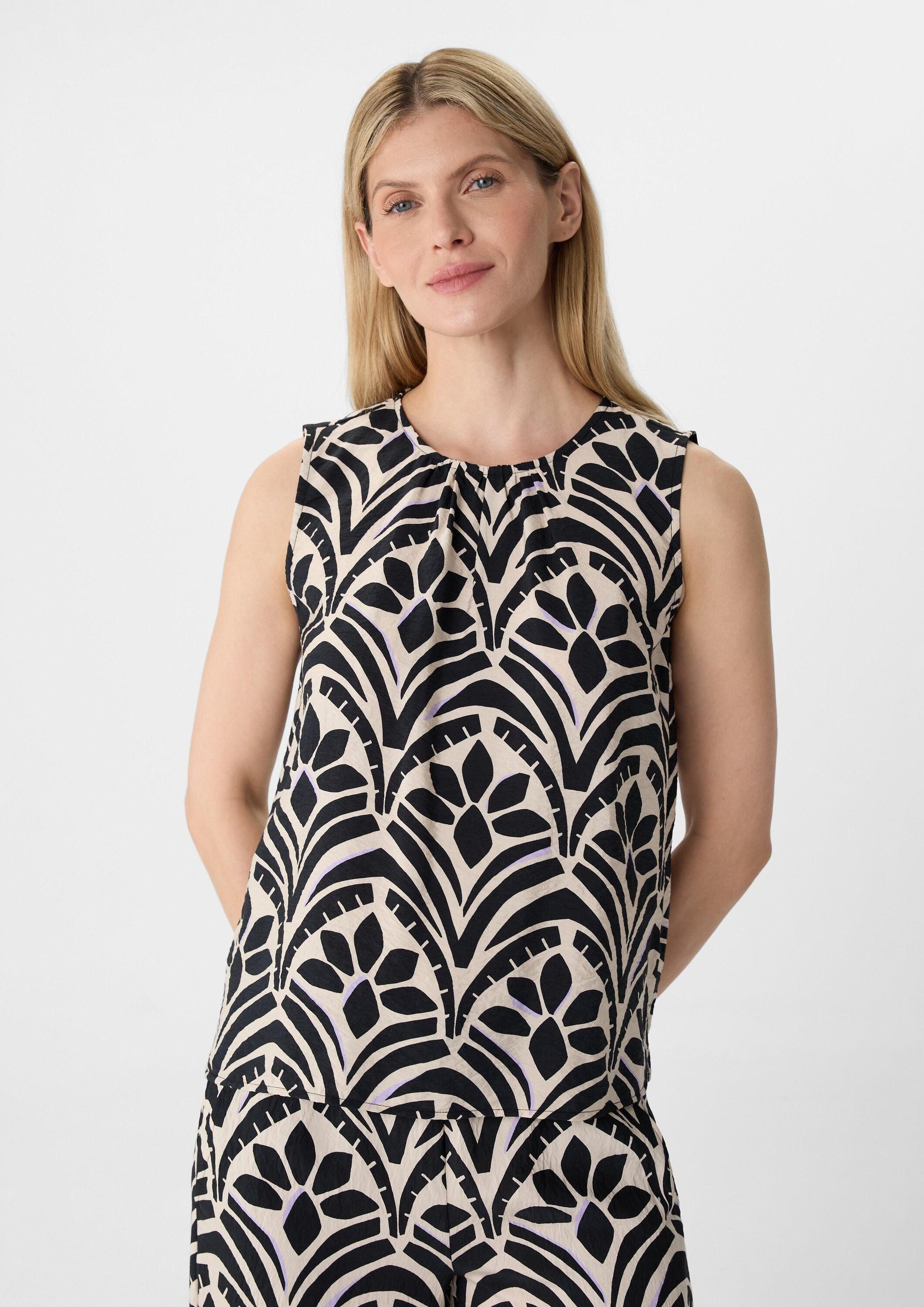 | Besondere Merkmale | Ärmellose Bluse mit Raffung und All-over-Print |