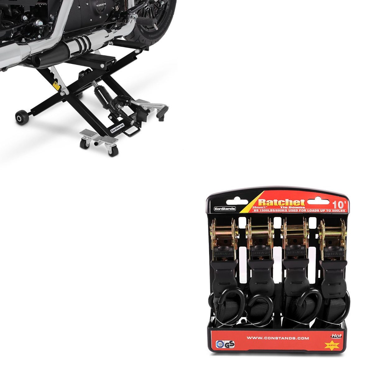 Lieferumfang: Hebebühne Midlift XL heber bis 500kg in schwarz + Spanngurt Set Ratsche mit 4x Zurrschlaufe schwarz