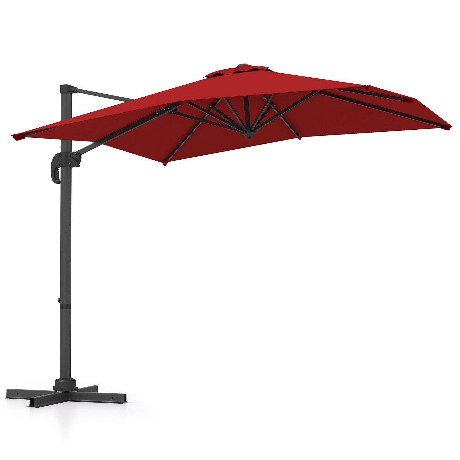 Dieser verstellbare Ampelschirm bietet eine vielseitige Lösung für Schatten im Freien. Das Dach ist aus hochwertigem Polyestergewebe gefertigt und bietet hervorragenden Sonnenschutz und ist lichtbeständig, sodass die leuchtenden Farben lange erhalten bleiben. Mit seinen 5 einstellbaren Neigungswinkeln und dem praktischen Fußpedal für eine 360°-Drehung können Sie die Position des Schirms ganz einfach an Ihre Bedürfnisse anpassen. Zugleich verfügt dieser quadratische Schirm über einen stabilen gekreuzten Sockel, und für zusätzliche Stabilität in verschiedenen Außenbereichen wie Pools, Höfen und Gärten wird ein beschwerter Ständer (nicht im Lieferumfang enthalten) empfohlen. Seine robuste Konstruktion, die von einer dicken Aluminiumstange und 8 hochbelastbaren Streben getragen wird, sorgt für überragende Windbeständigkeit und Sicherheit. Weitere praktische Merkmale sind ein belüftetes Oberteil für eine verbesserte Luftzirkulation und ein Schlaufengurt zum Sichern des Schirms bei Nichtgebrauch.