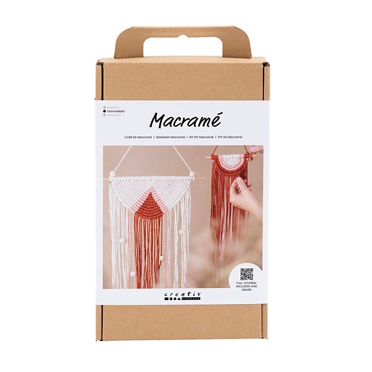 Wenn Sie lernen möchten, wie man Wanddeko in der Makramee-Technik knüpft, ist dieses Set perfekt für Sie. Zum Herstellen einer hängenden Dekoration bestehend aus geknoteten Halbkreisen auf einem Holzstab.