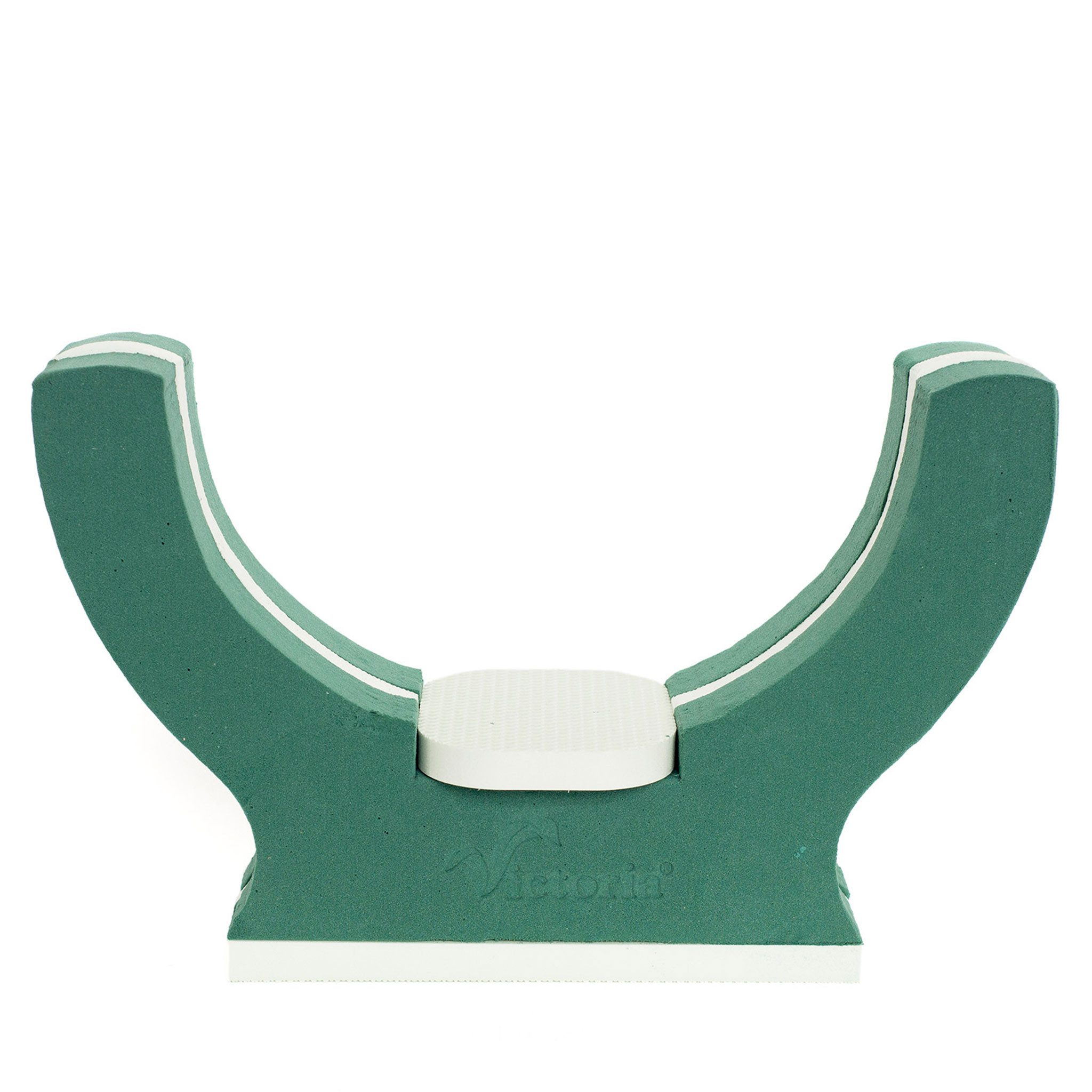Steckschwamm / Steckmoos / Blumensteckschaum / Blumen Steckmasse nass Material: Kunststoff - Schaumstoff, Hartschaum Größe Ständer (BxHxT): ca. 46 x 30 x 12 cm Größe Stellfläche (LxB): ca. 11,5 x 13 cm Packungsinhalt: 1 Stück Farbe: grün - in EU hergestellt - sowohl für Profi Floristen als auch für Hobby Bastler geeignet - für Frischblumen, aber auch für Trockenblumen und Kunstblumen ideal - mit Fläche zur Präsentation - beidseitig, rundherum dekorierbar Anleitung für gleichmäßige Durchfeuchtung: Die Steckschaumseite aufs Wasser legen und sie einige Minuten lang eigenständig vollsaugen lassen. Nicht unter Wasser drücken, da dies das Eindringen von Wasser in den Steckschaum behindern kann Unser Blumenschaum für Frischblumen bietet die ideale Basis für floristische Gestaltungen. Der halbrunde Urnenständer verfügt über eine zentrale Stellfläche, die für eine Urne oder Trauerurne geeignet ist, welche in das florale Trauergesteck eingebettet wird. Eine stilvolle Urnendekoration für eine würdevolle Trauerfeier. Gleichzeitig eignet sich der Ständer auch zur Präsentation von einem Pokal oder Buch. Dank seiner Vielseitigkeit ist der Steckschaum eine stabile Grundlage für unterschiedlichste Gestecke – sei es ein Blumengesteck, Grabgesteck, Hochzeitsgesteck, Ostergesteck oder Trauerfloristik und ist das perfekte Floristik Zubehör. Außerdem hält der Nasssteckschaum Ihre Schnittblumen länger frisch. Doch nicht nur als Floristikbedarf für frische Blumengestecke eignet sich die Nasssteckmasse. Mit Leichtigkeit lassen sich auch beliebige Blumenstecker und weiterer Bastelbedarf in den Blumenschwamm stecken. Ob für professionelle Floristen oder Hobbybastler, dieser Steckschaum Halbring ist ideal für Blumenarrangements und Geschenke. Figur & Thema & Motto: Urnenhalbring, halber Ring, Urnenschmuck, Urnenkranz, Halbkranz, Präsentationsständer Anlässe: Verlobung, Hochzeit, Taufe, Jubiläum, Trauer, Beerdigung
