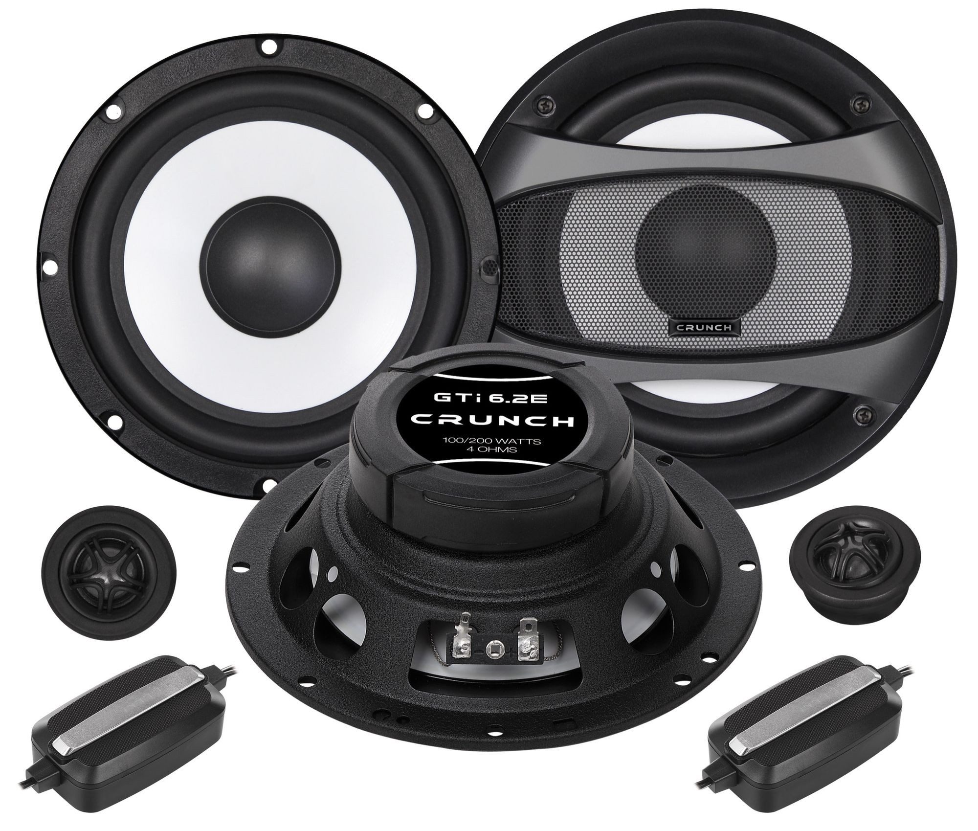 Mit dem neuen Lautsprecher-Set GTI 6.2E wird die sehr beliebte GTI-Serie von Crunch um ein weiteres Kompo- Systeme mit einbaufreundlicher Kabelweiche erweitert.