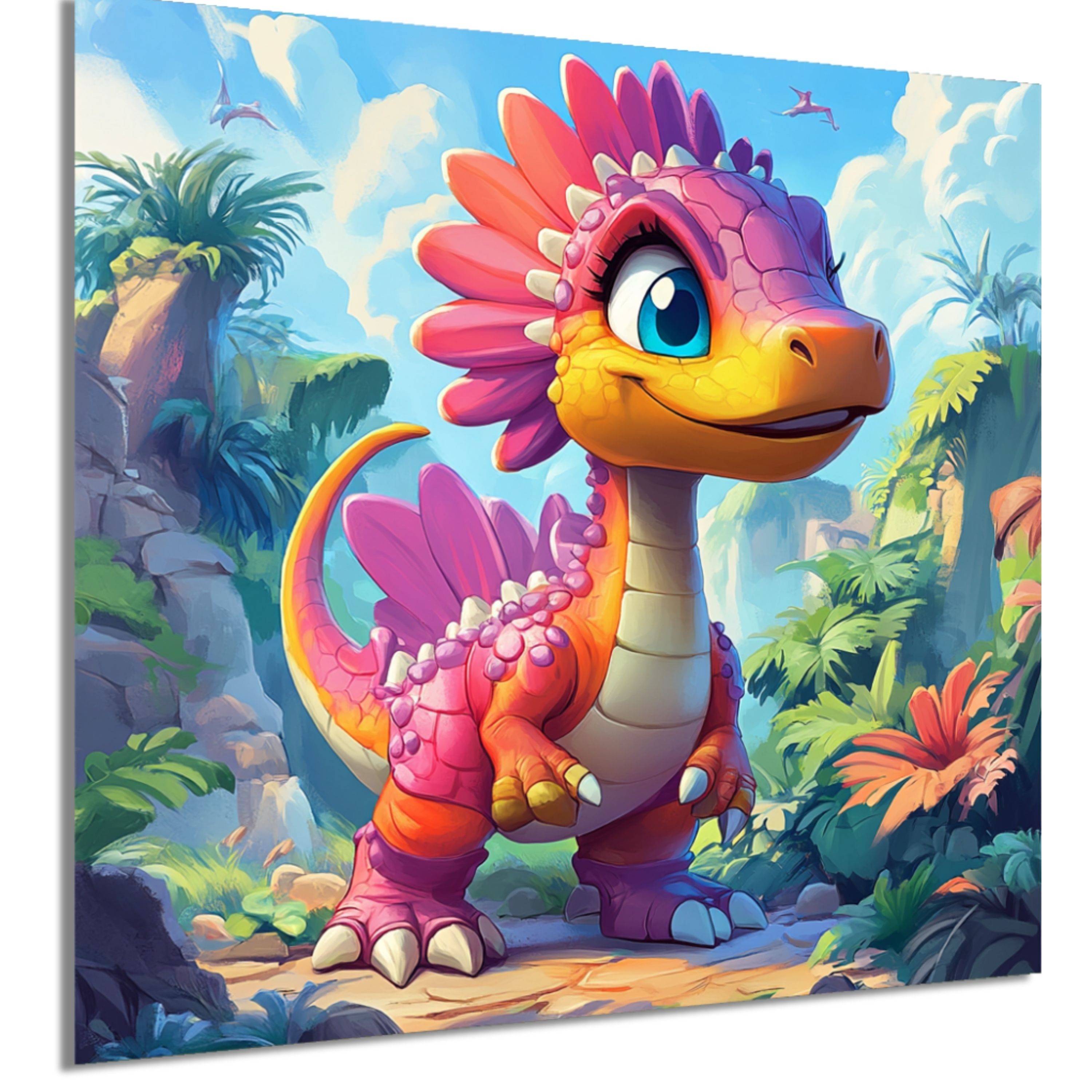 Produktvorteile im Überblick: - Moderne Designs für Kinder in verschiedenen Farben mit Dinomotiven, perfekt fürs Kinderzimmer oder Spielzimmer - Hochwertiger Druck auf stabilem 6mm HDF-Träger – langlebig, robust und formstabil - Vormontierter Metallhaken – einfache und sichere Wandmontage ohne zusätzlichen Aufwand - Pflegeleichte Oberfläche – mit feuchtem Lappen abwischbar, für langanhaltende Frische - Erhältlich in verschiedenen Größen von 30x20 cm bis 120x80 cm – ideal für kleine und große Wände