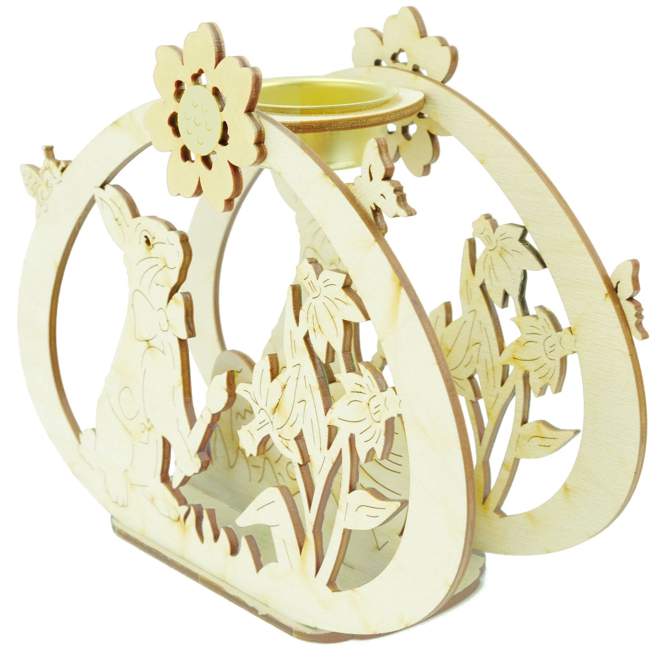Entdecke dieses kreative Bastelset aus Holz. Ideal, um mit Kindern kreative Stunden zu verbringen, z.B. zu Ostern oder bei Geburtstagen. Es fördert nicht nur die Fantasie und Feinmotorik beim Basteln und Bemalen, sondern ist auch Spaß und Unterhaltung für die ganze Familie! Gestalte diese schöne Deko mit Teelichthalter nach deinen Vorstellungen!