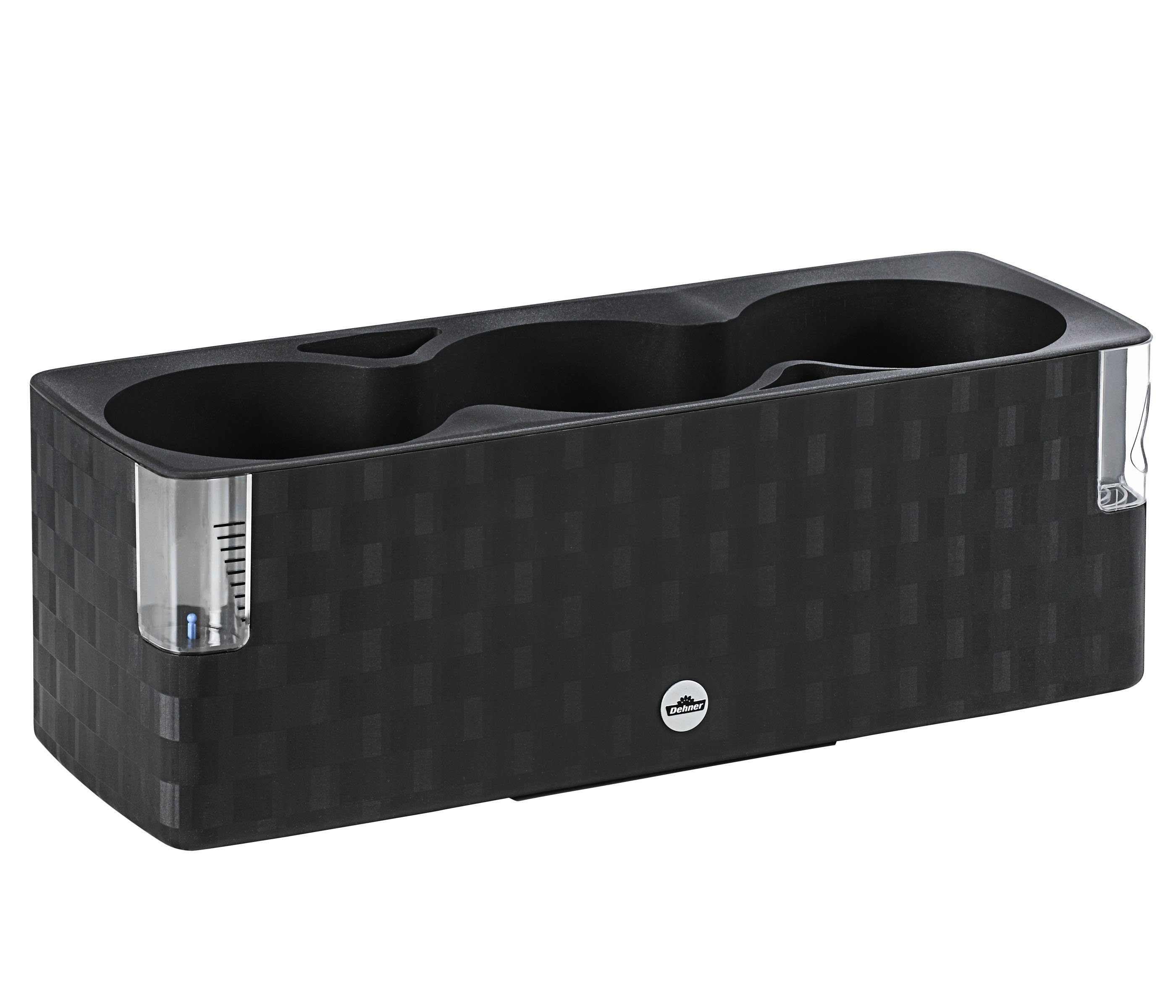 Der Kunststoffkasten Mona mit Bewässerungssystem ist aus hochwertigem Kunststoff, der robust, bruchsicher und angenehm leicht ist. Zur Top-Ausstattung gehört aber auch ein praktischer Wasserstandsanzeiger sowie zwei Eingieß-Öffnungen, über die Sie die notwenige Wassermenge einfüllen können. Und schließlich wird der Kräuterkasten durch die elegante Oberflächenstruktur in dezentem Karo-Muster gekrönt, die sich in jeder Art von Küche hervorragend macht.