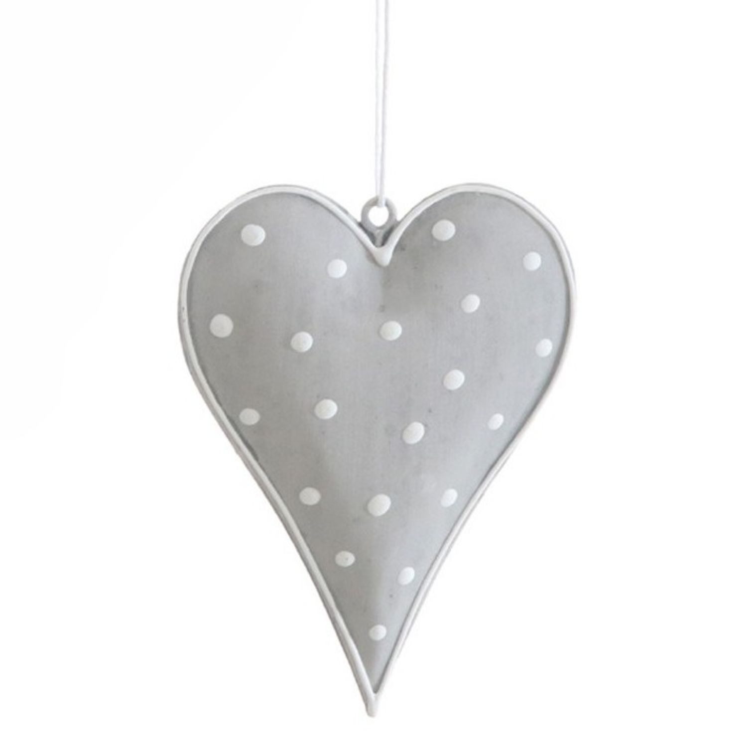 Diese zauberhaften Dekoherzen aus Metall in edlem Hellgrau mit weißen Punkten vereinen zeitlosen Vintage-Charme mit moderner Schlichtheit. Im beliebten Shabby Chic-Look gestaltet, passen sie wunderbar zu natürlichen, neutralen Farbkonzepten und lassen sich hervorragend mit Tischläufern oder anderer Deko im Landhausstil kombinieren.