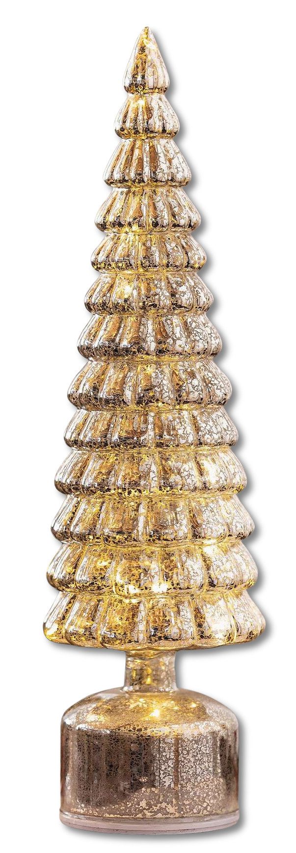 Die edel geformte Tanne besteht vollständig aus Glas und ist in einer glänzenden Bauernsilberoptik gefertigt, die durch ihre charakteristische Oberfläche nostalgischen Charme mit moderner Eleganz verbindet. Der zarte Schimmer des Materials verleiht dem Dekoobjekt eine lebendige Ausstrahlung, die bei jeder Beleuchtung unterschiedlich zur Geltung kommt – ein wahrer Blickfang auf jedem Sideboard, Fensterbank oder als Tischdeko.