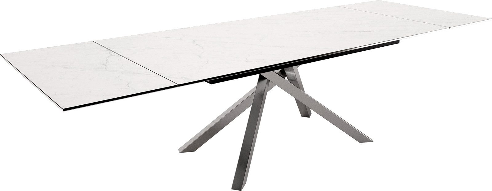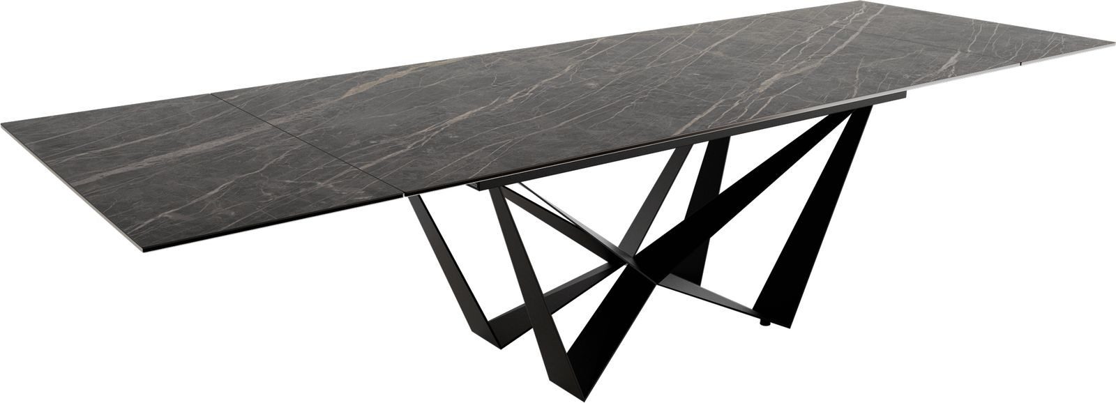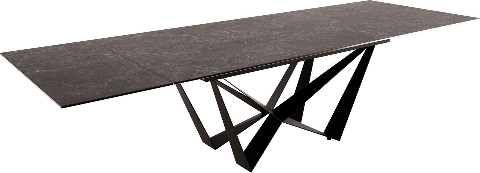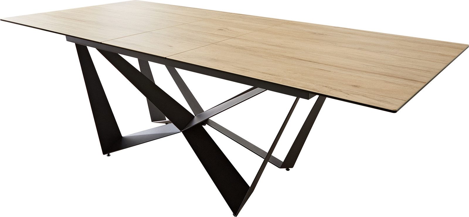 Nicht nur mit seiner praktischen Ausziehfunktion weiß der Edge-Tisch zu beeindrucken. Ein weiteres Highlight ist das anspruchsvolle Spider-Tischgestell aus schwarzem, aufwendig pulverbeschichtetem Metall.