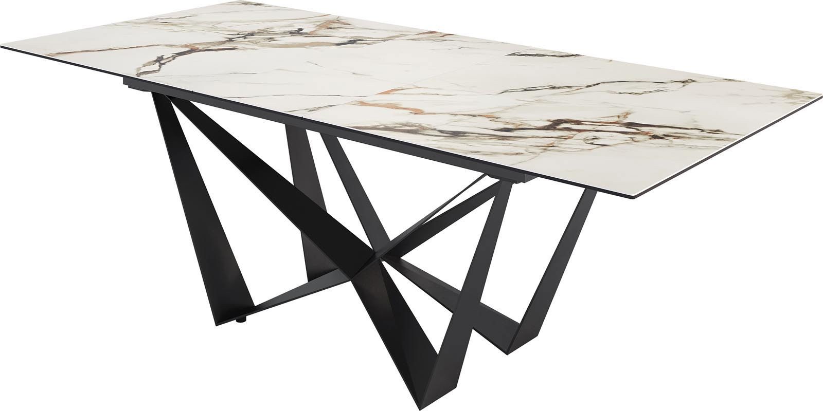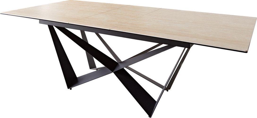 DELIFE Esstisch Edge, Keramik Travertin Natur 180-220x100 Spider Flachstahl Schwarz ausziehb