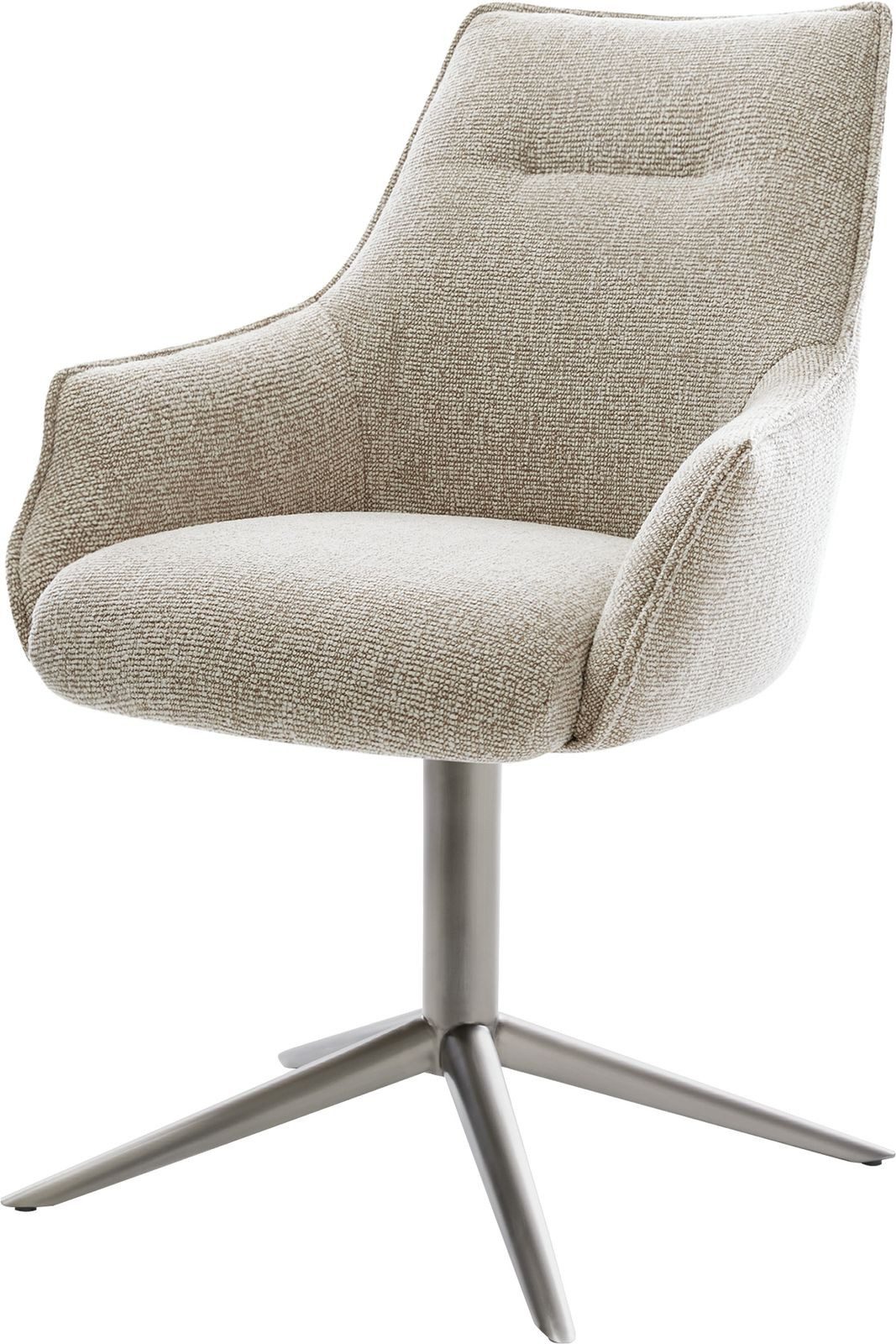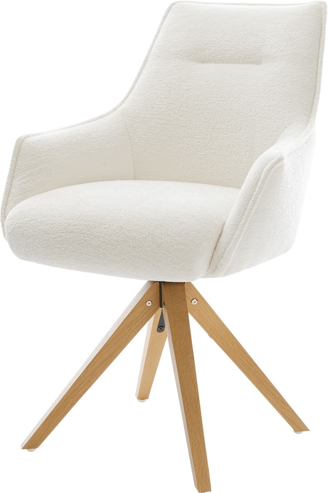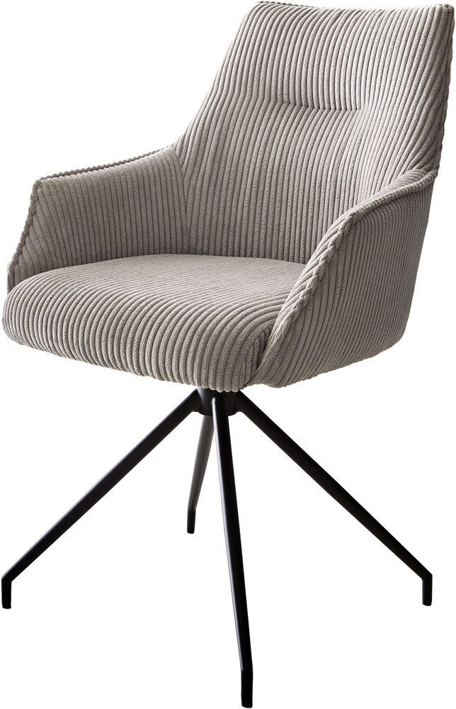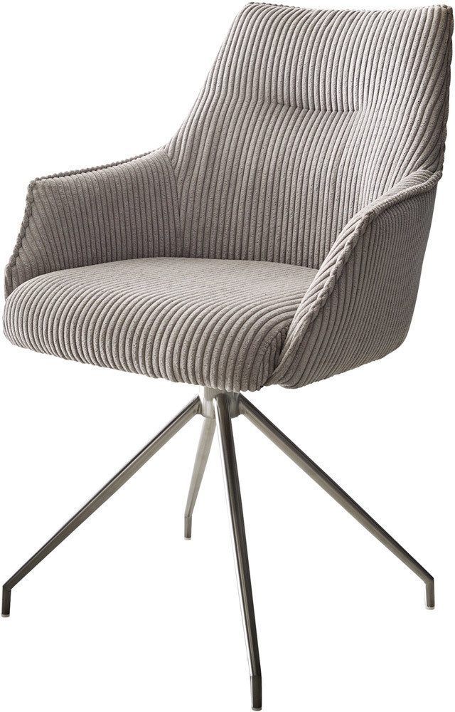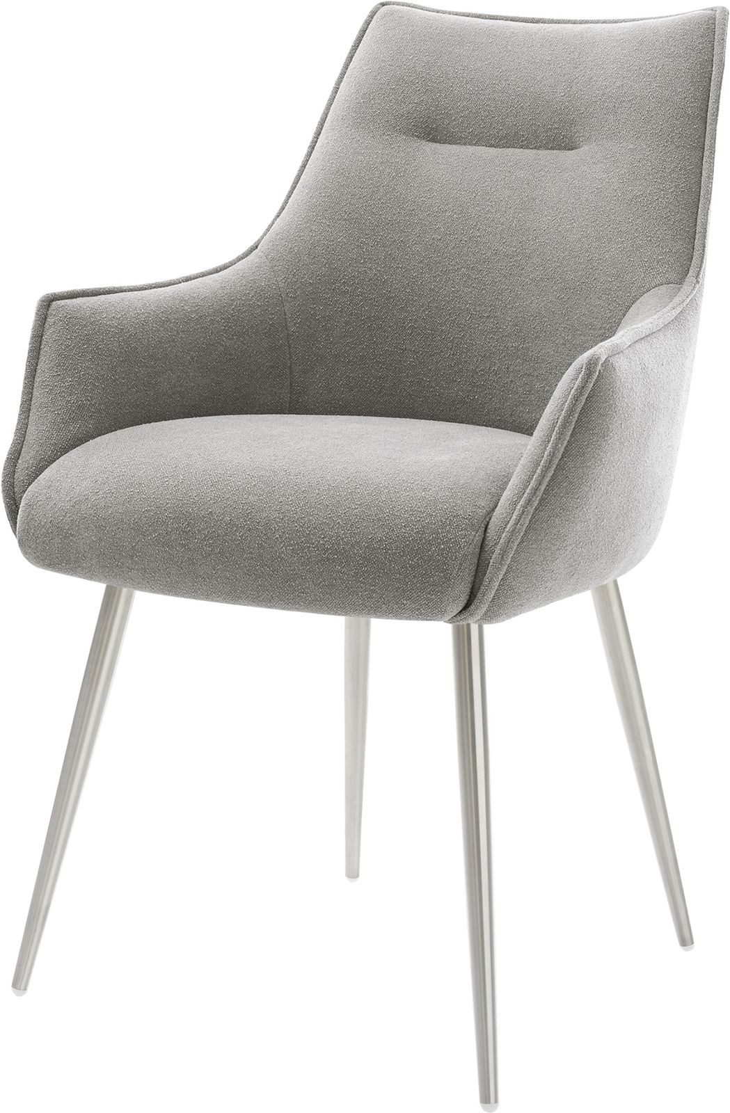 Der Polsterstuhl Alja mit Armlehnen punktet durch sein elegantes Design mit formschöner Linienführung und raffiniertem Einzug im Rückenbereich. Die Innenseite des Stuhls wurde mit einem vertikalen Faltenspiel besonders soft gestaltet und steht im interessanten Kontrast zur runden und formstabilen Außenseite. Schlanke Armlehnen und eine hervorragende Polsterung mit Taschenfederkern laden zum Verweilen ein und sorgen für echten Sitzkomfort über viele Stunden.
