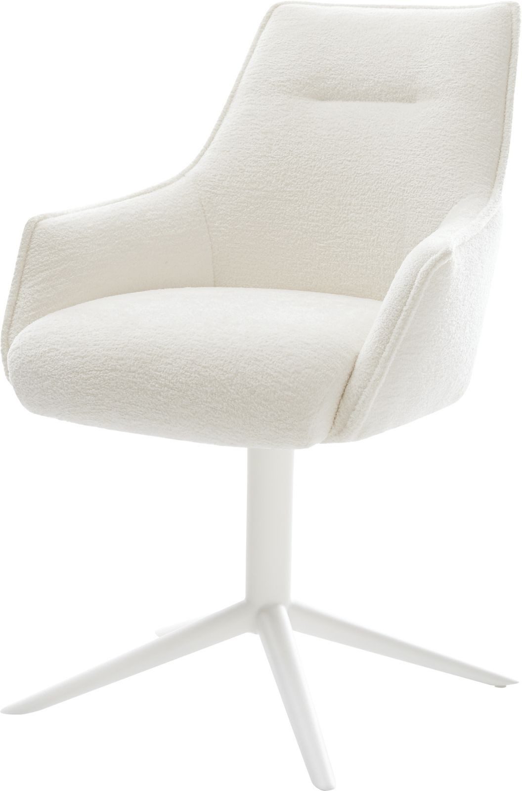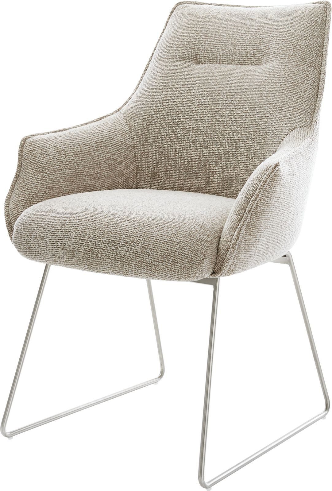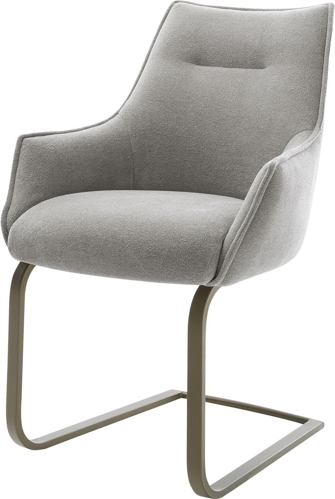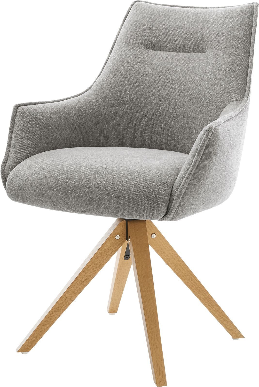 Der Polsterstuhl Alja mit Armlehnen punktet durch sein elegantes Design mit formschöner Linienführung und raffiniertem Einzug im Rückenbereich. Die Innenseite des Stuhls wurde mit einem vertikalen Faltenspiel besonders soft gestaltet und steht im interessanten Kontrast zur runden und formstabilen Außenseite. Schlanke Armlehnen und eine hervorragende Polsterung mit Taschenfederkern laden zum Verweilen ein und sorgen für echten Sitzkomfort über viele Stunden.