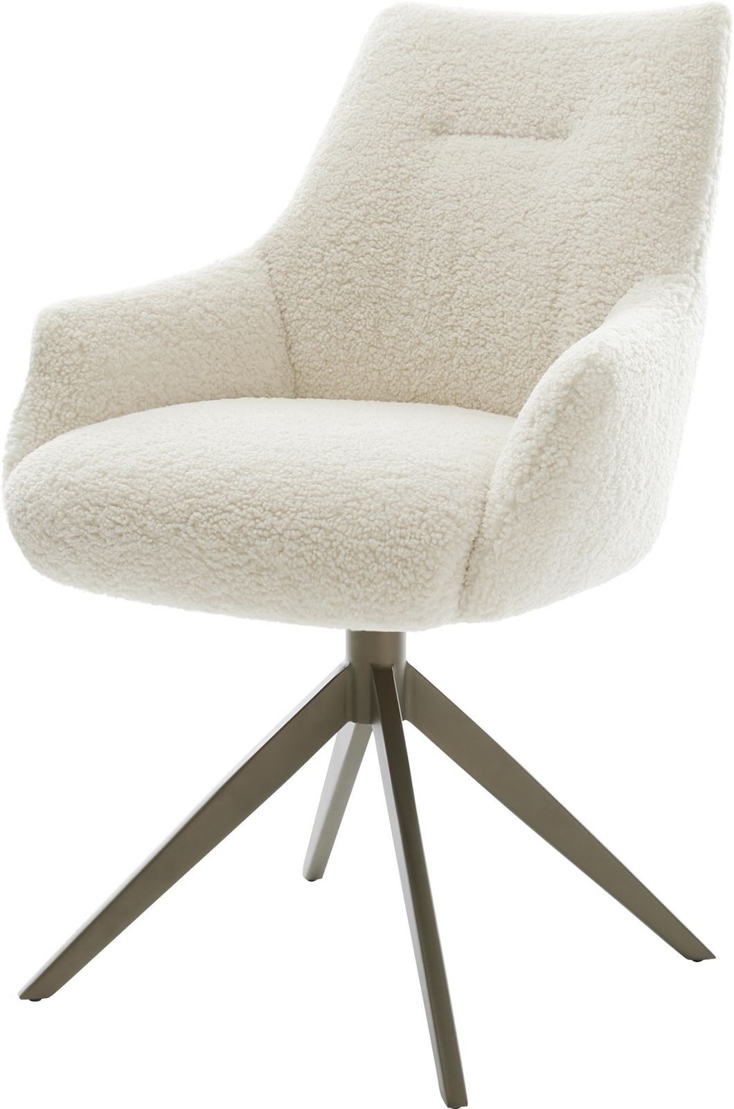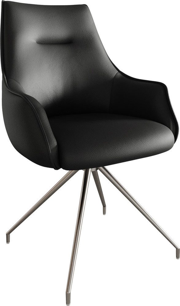 Das Kreuzgestell überzeugt durch sein einmaliges Design. Vier Füße verlaufen in sanft konischer Form und knicken dramatisch zum Boden hin ab. Das sieht nicht nur aufregend gut aus, sondern sorgt für besonders sicheren Stand. Das Kreuzgestell verfügt über eine zusätzliche Drehfunktion inkl. Rückholfunktion von 180 Grad und macht diesen Stuhl deshalb herrlich praktisch und komfortabel.