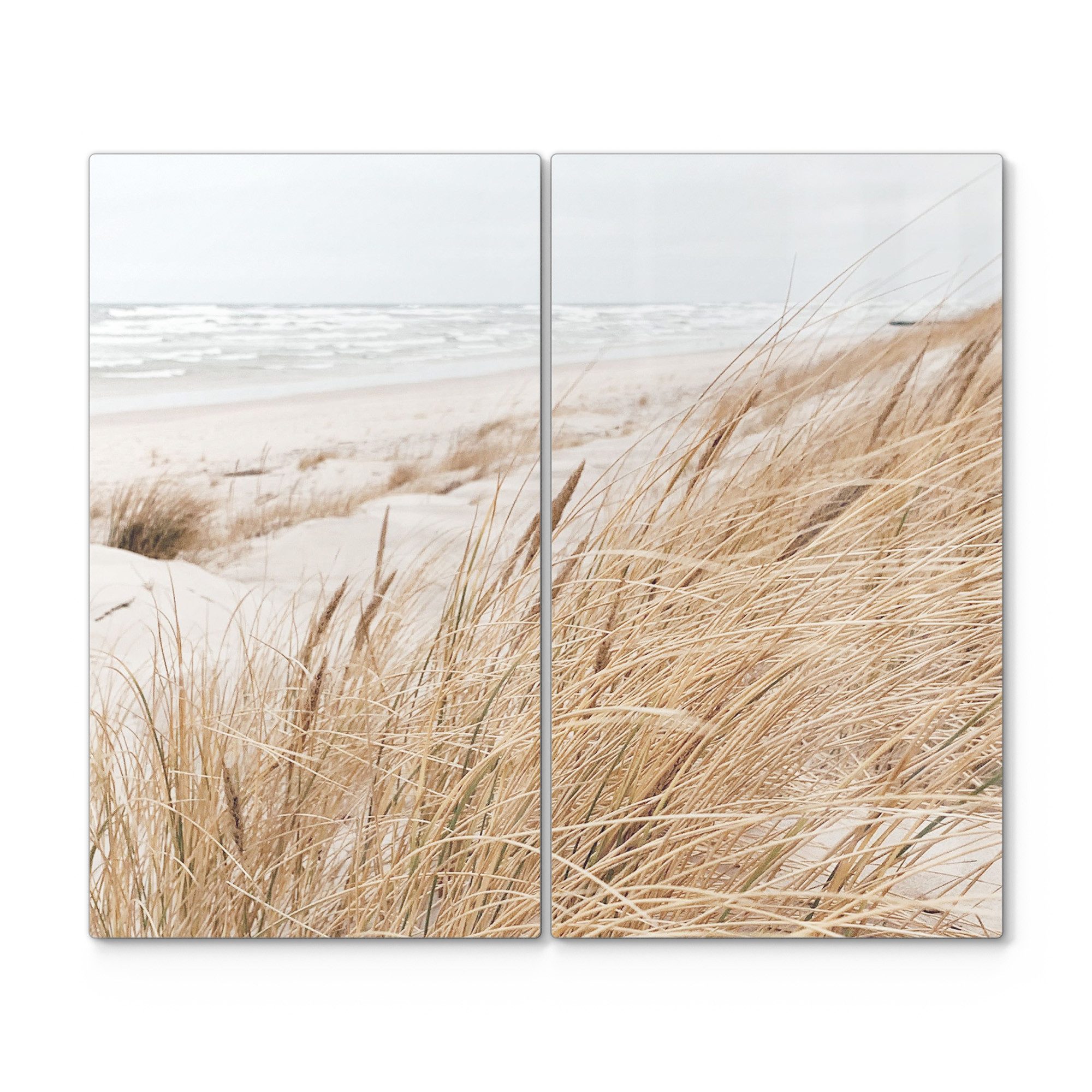 DEQORI Herdblende-/Abdeckplatte 'Winterstrand Stille', Glas, (2 tlg), Herdabdeckplatte Ceranfeld Herd Platte Abdeckung Glasplatte