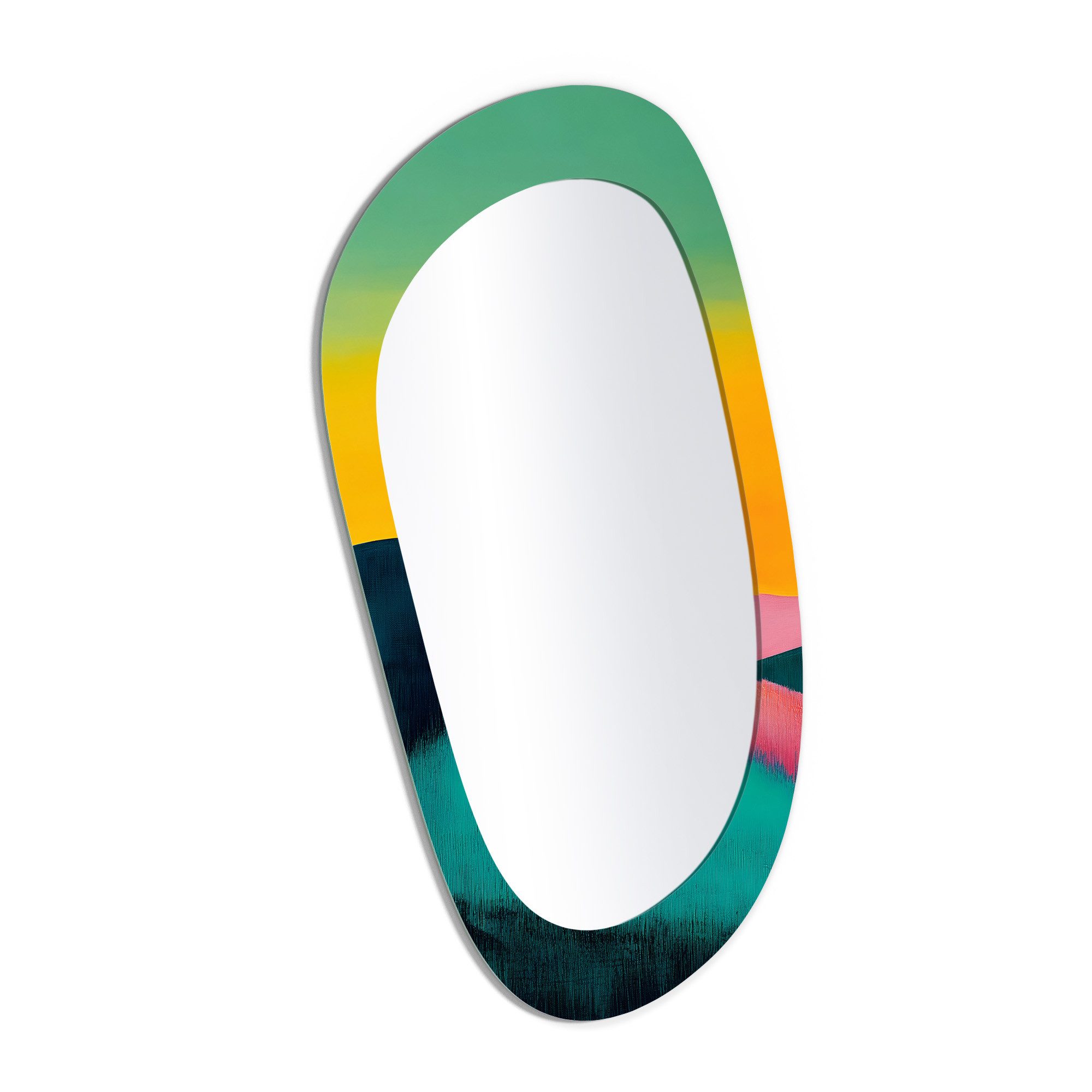 Der asymmetrische Spiegel 53,9x89,6 cm von DEQORI vereint Funktionalität mit Design. Der UV-Druck bringt das Motiv direkt auf die Spiegelfläche – farbintensiv, langlebig und stilvoll. So wird der Spiegel zum dekorativen Blickfang, ohne seine reflektierende Funktion zu verlieren.