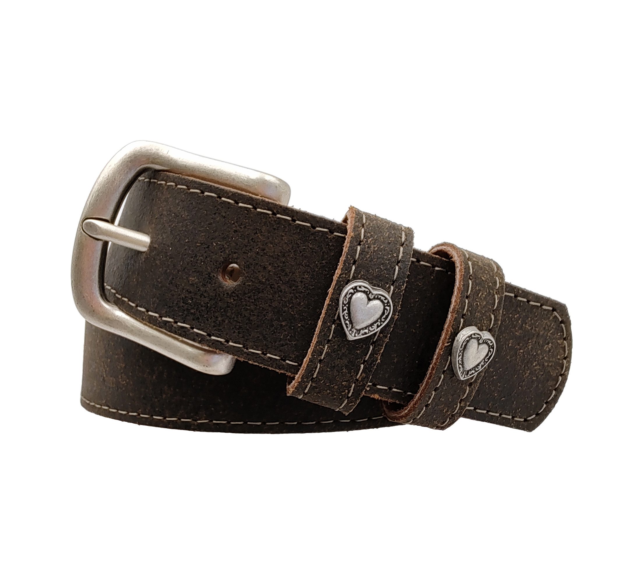Verleihe deinem Trachtenoutfit das besondere Etwas mit diesem Ledergürtel. Die hochwertige Verarbeitung und das zeitlose Design machen ihn zum perfekten Accessoire für Volksfeste oder den Alltag. Besonders charmant sind die beiden Schlaufen, die mit liebevoll gestalteten Zierteilen in Herzform versehen sind. Diese kleinen Details setzen romantische Akzente und verleihen dem Gürtel eine verspielte, elegante Note. Ein vielseitiges Accessoires, das Tradition und Stil harmonisch verbindet - perfekt, um deinem Trachtenlook den letzten Schliff zu geben!