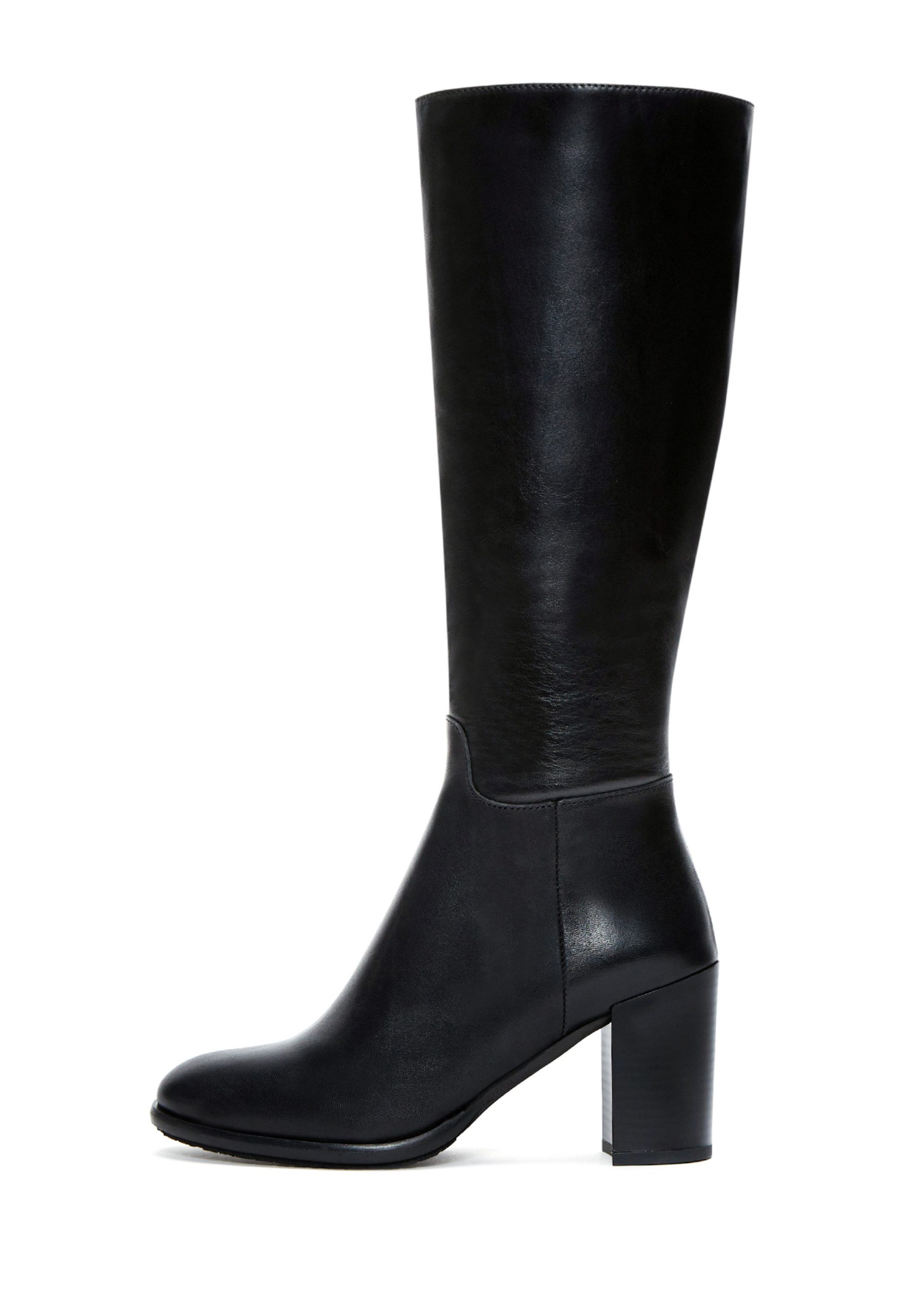 Damenstiefel aus Leder mit Absatz in Schwarz mit Reißverschluss an der Innenseite