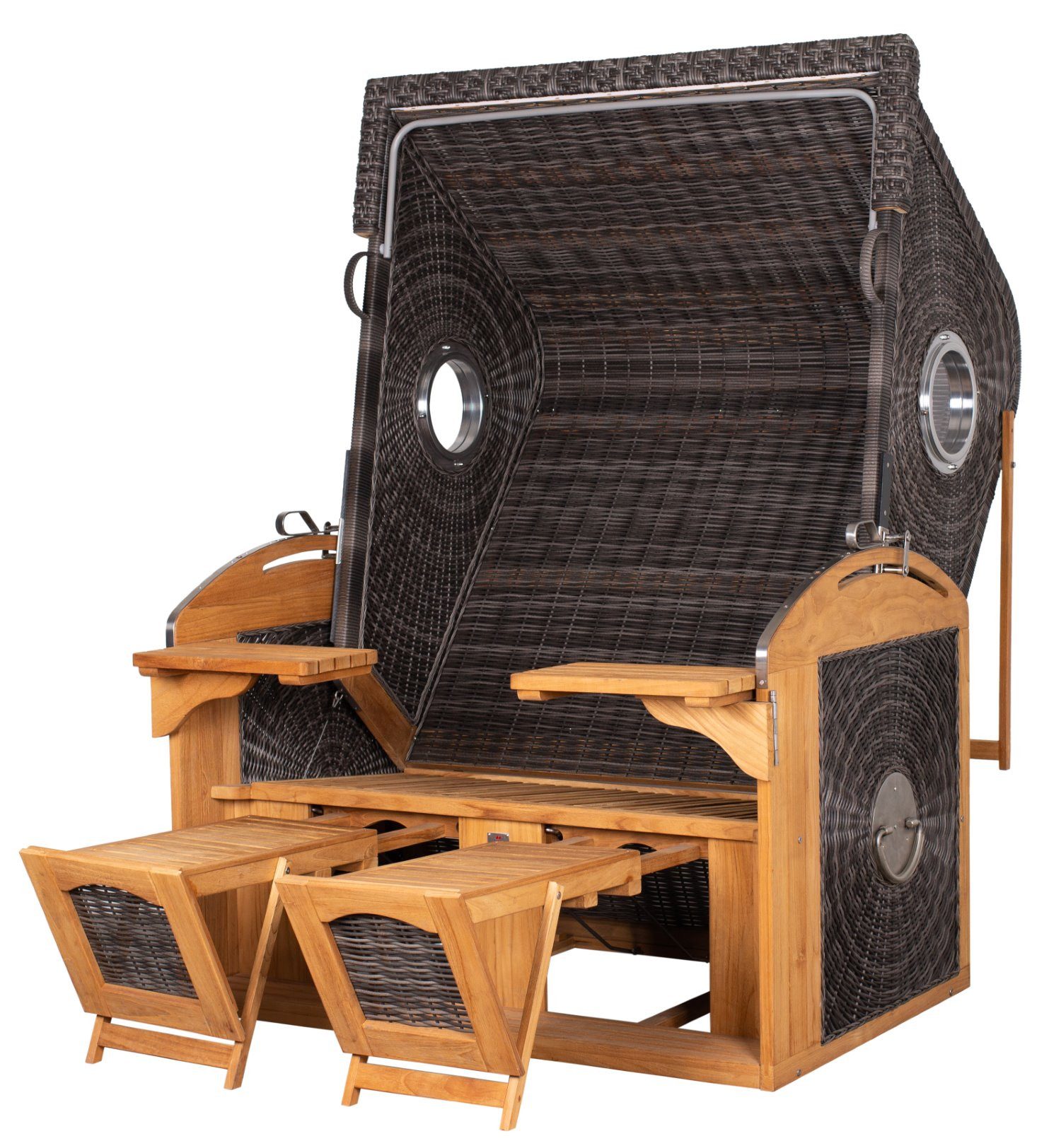Das Wichtigste auf einen BlickWenn Sie auf der Suche nach einer perfekten Kombination aus Eleganz, Luxus und Komfort für Ihre Zeit im Garten sind, dann ist der deVries Strandkorb Sailor XL die optimale Wahl. Gefertigt aus hochwertigem Teakholz und PE-Rattan in der Farbe stone grey verkörpert dieser Strandkorb Eleganz und Langlebigkeit in Perfektion.