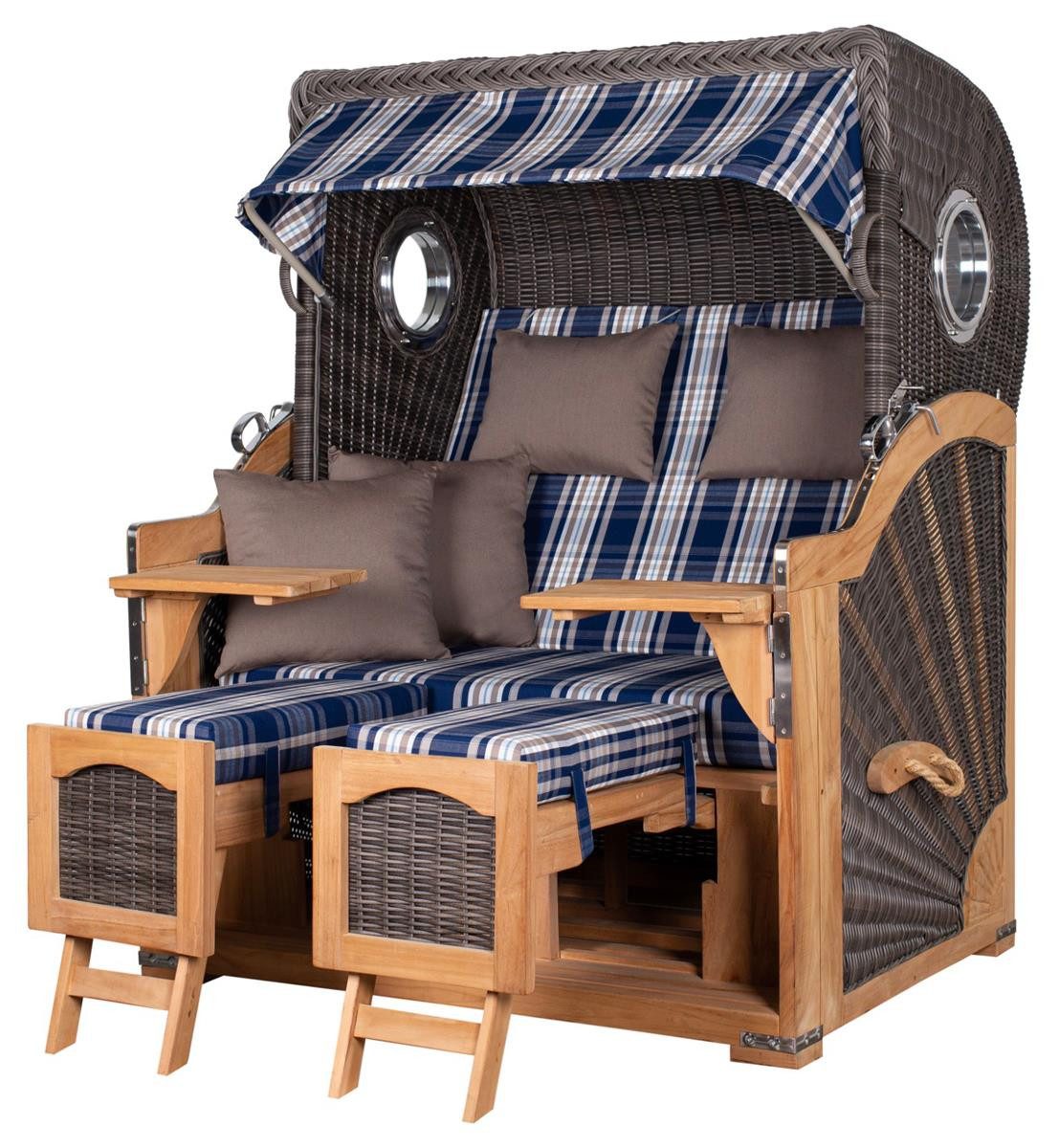 Das Wichtigste auf einen BlickLehnen Sie sich im Strandkorb Seemöwe XL zurück und genießen den herrlichen Komfort von Teakholz und witterungsbeständigem PE-Geflecht und erfreuen Sie sich an der wichen Polsterung. Mit der mitgelieferten Schutzhaube schützen Sie Ihren neuen Strandkorb optimal gegen Wind und Wetter.