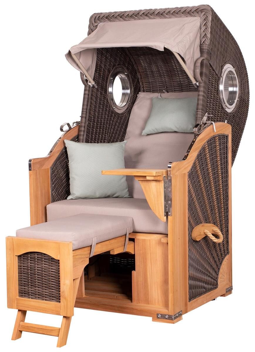 Entspannen Sie sich mit der ausziehbaren Fußstütze und erleben Sie höchsten Komfort. Die extra dicke und bequeme Polsterung umhüllt Sie förmlich und lädt zum Verweilen ein. Jeder Moment in diesem Strandkorb wird zu einem unvergesslichen Erlebnis der Entspannung und des Genusses.