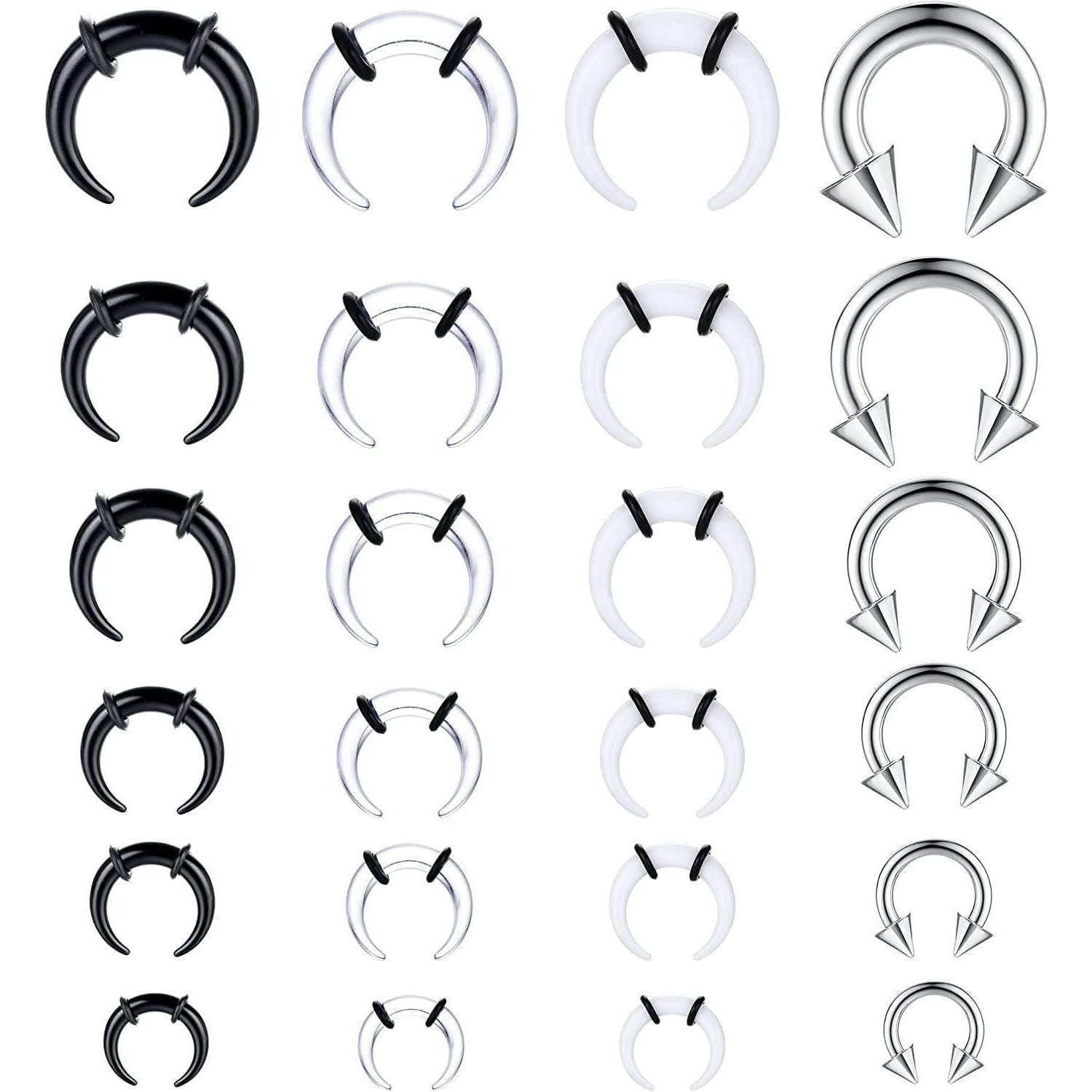 Die 24 enthaltenen Stücke bieten eine große Auswahl an Tragemöglichkeiten. Ob als gewöhnliches Septum- oder Ohrenpiercing oder zum Dehnen von Ohrläppchen und Nasenpiercings, mit diesem Set sind Sie bestens ausgestattet. Zudem eignet sich das Set hervorragend als Geschenk für Freunde und Familie.