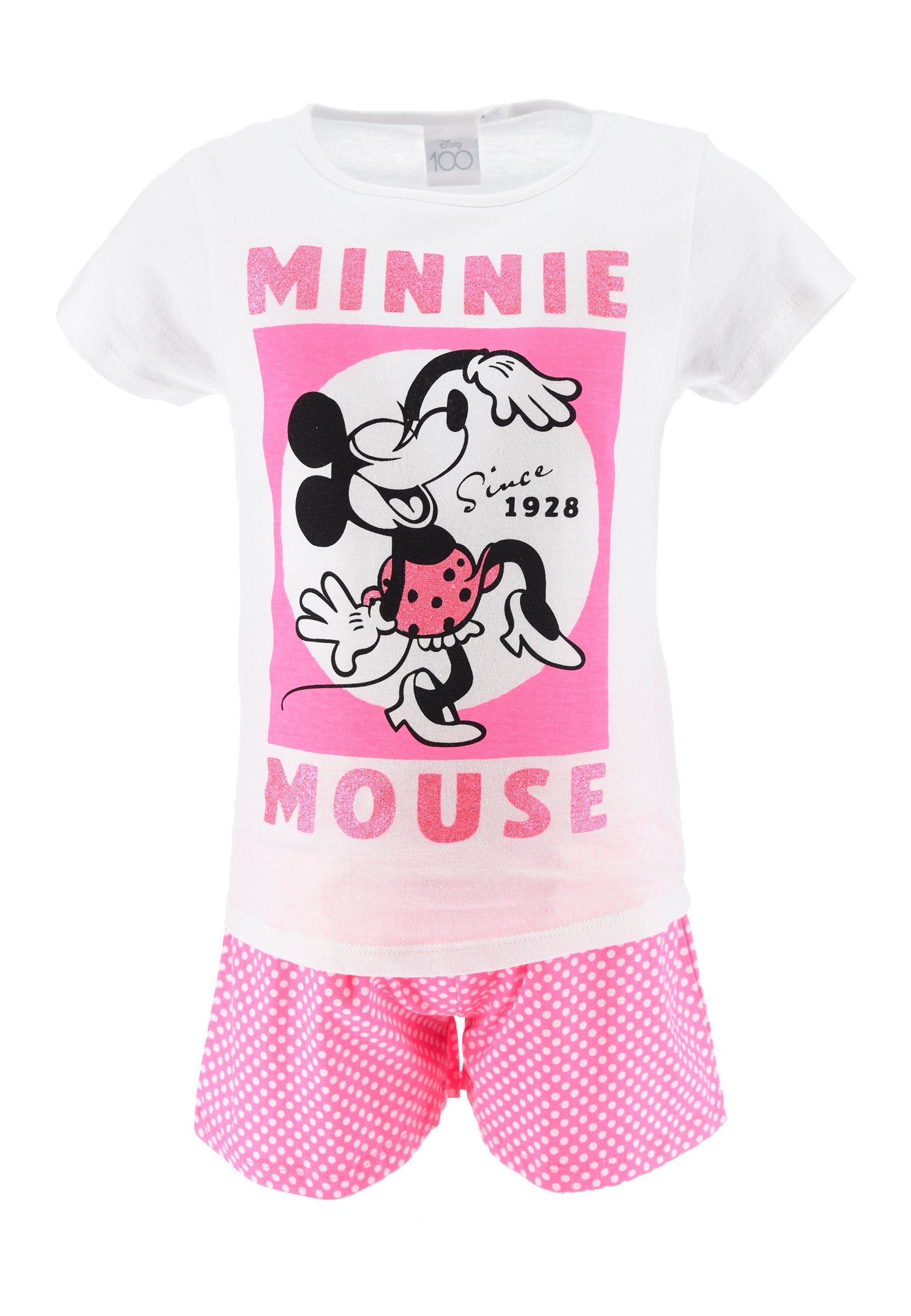 Kinder Schlafanzug aus angenehmer Baumwolle. Süßer Print von Minnie Mouse auf der Vorderseite.