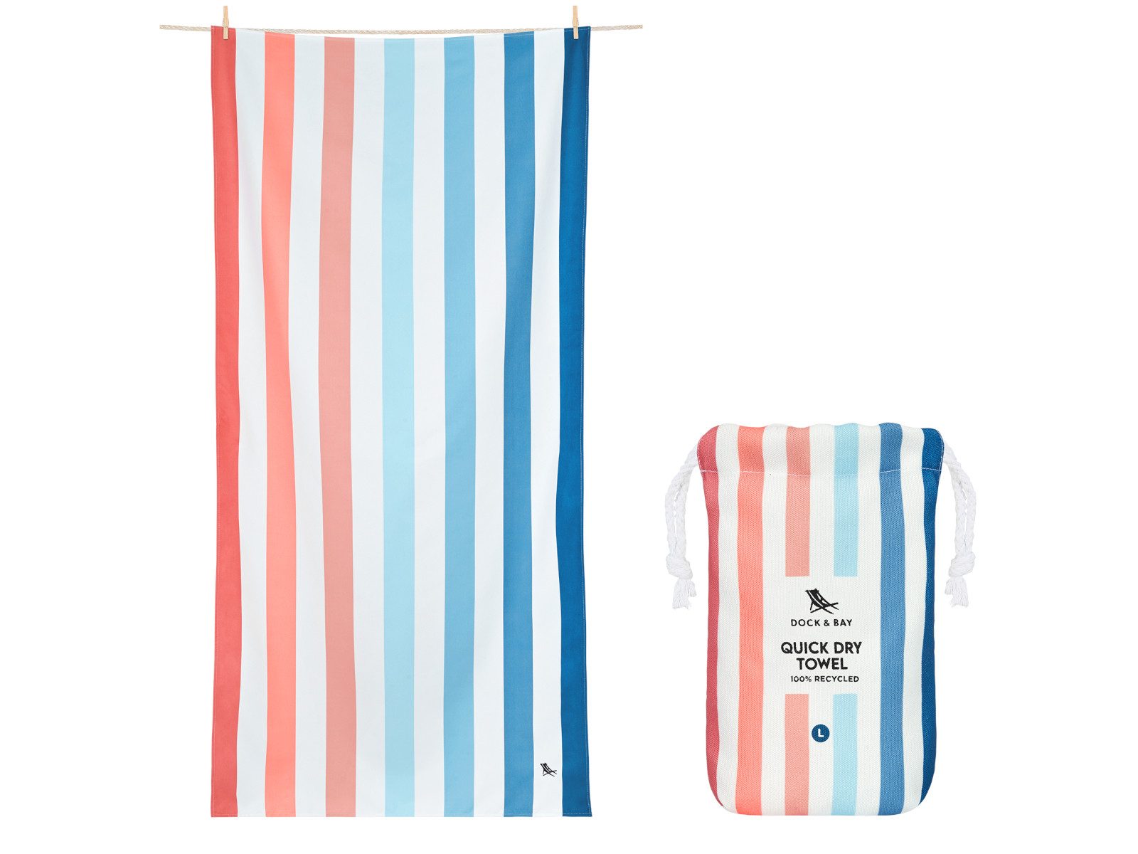 Lebendig wie ein Sommertag am Meer: Das Dock & Bay Beach Towel „Sand to Sea“ in Größe L kombiniert auffällige Streifen in Orange- und Blautönen zu einem frischen, maritimen Look. Ob am Strand, Pool oder unterwegs – dieses Mikrofaserhandtuch ist besonders saugfähig, trocknet im Handumdrehen und nimmt kaum Platz im Gepäck ein. Perfekt für alle, die Funktionalität mit einem farbenfrohen Design verbinden möchten.