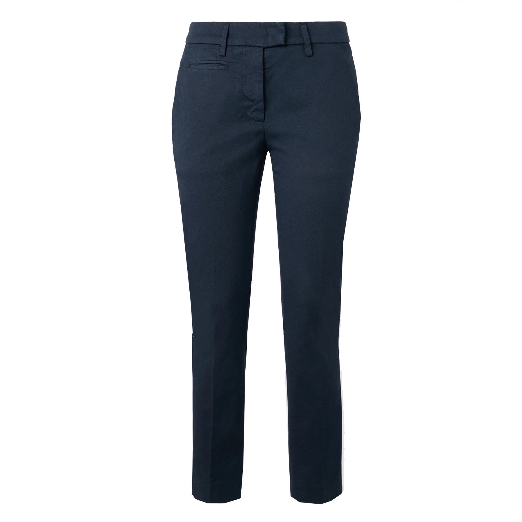 Entdecken Sie die stilvolle Hose von DONDUP in einem tiefen Blauton, die Ihrem Outfit einen Hauch von zeitloser Eleganz verleiht. Mit ihrer normalen Leibhöhe und dem schmal zulaufenden Bein bietet sie sowohl Komfort als auch einen schlanken Look. Die verkürzte Beinlänge verleiht dieser Hose eine moderne Note und ermöglicht es Ihnen, Ihre Lieblingsschuhe perfekt in Szene zu setzen. Der Verschluss erfolgt mühelos mit Knopf, Haken und Reißverschluss, während die Gürtelschlaufen Ihnen die Möglichkeit bieten, einen Gürtel hinzuzufügen, um Ihren persönlichen Stil zu unterstreichen. Praktische seitliche Eingrifftaschen und geknöpfte Leistentaschen auf der Rückseite sorgen für genügend Stauraum und Funktionalität. Diese Hose wurde mit höchster Handwerkskunst in Italien gefertigt und trägt die Herstellerfarbe 'Universo'. Hergestellt aus hochwertigem Material, bestehend aus 99% Wolle und 1% Elasthan, bietet sie nicht nur einen eleganten Look, sondern auch hohen Tragekomfort. Diese Hose ist die perfekte Wahl für anspruchsvolle Anlässe oder um Ihrem Alltagsoutfit eine Extraportion Raffinesse zu verleihen. Mit DONDUP setzen Sie auf Qualität und Stil zugleich.