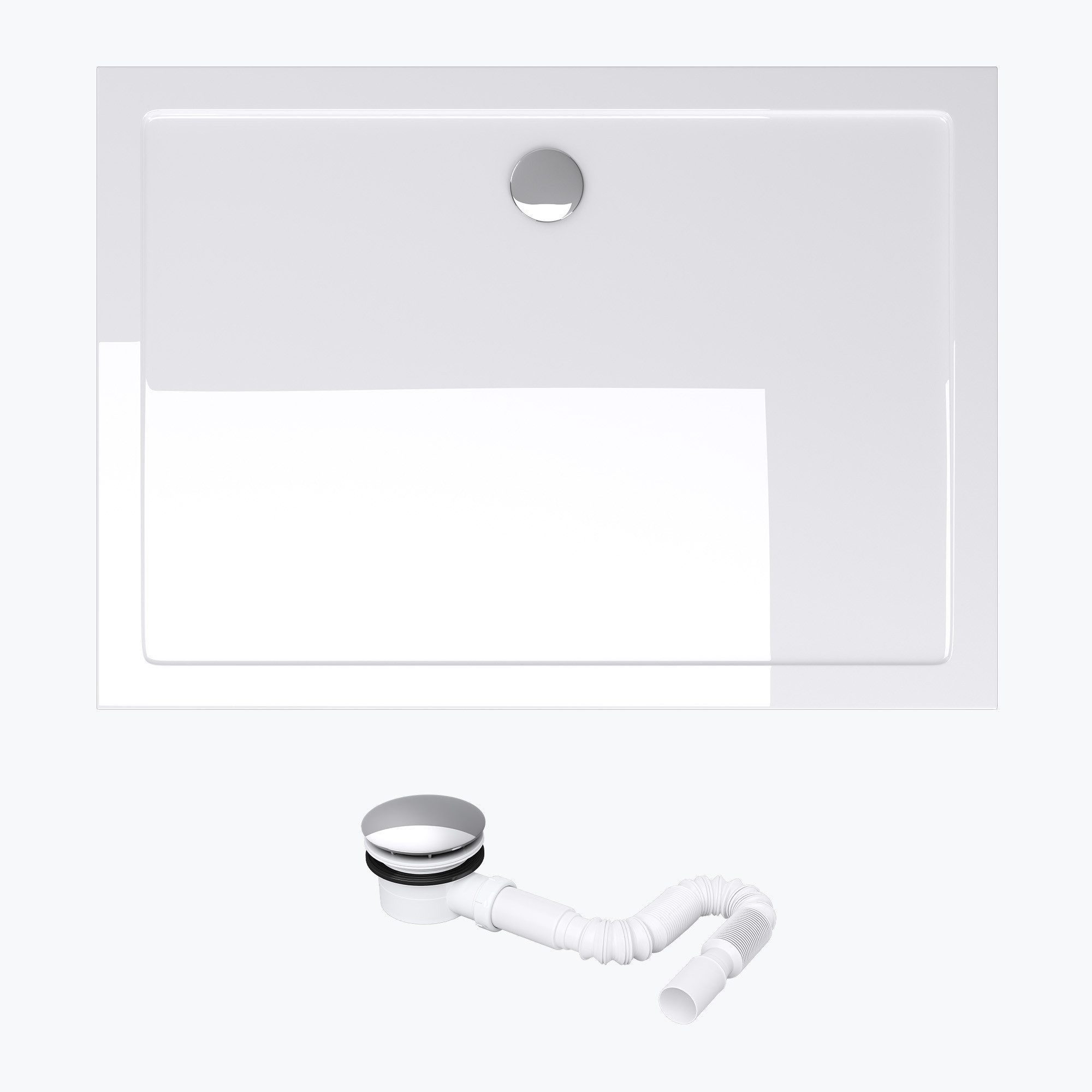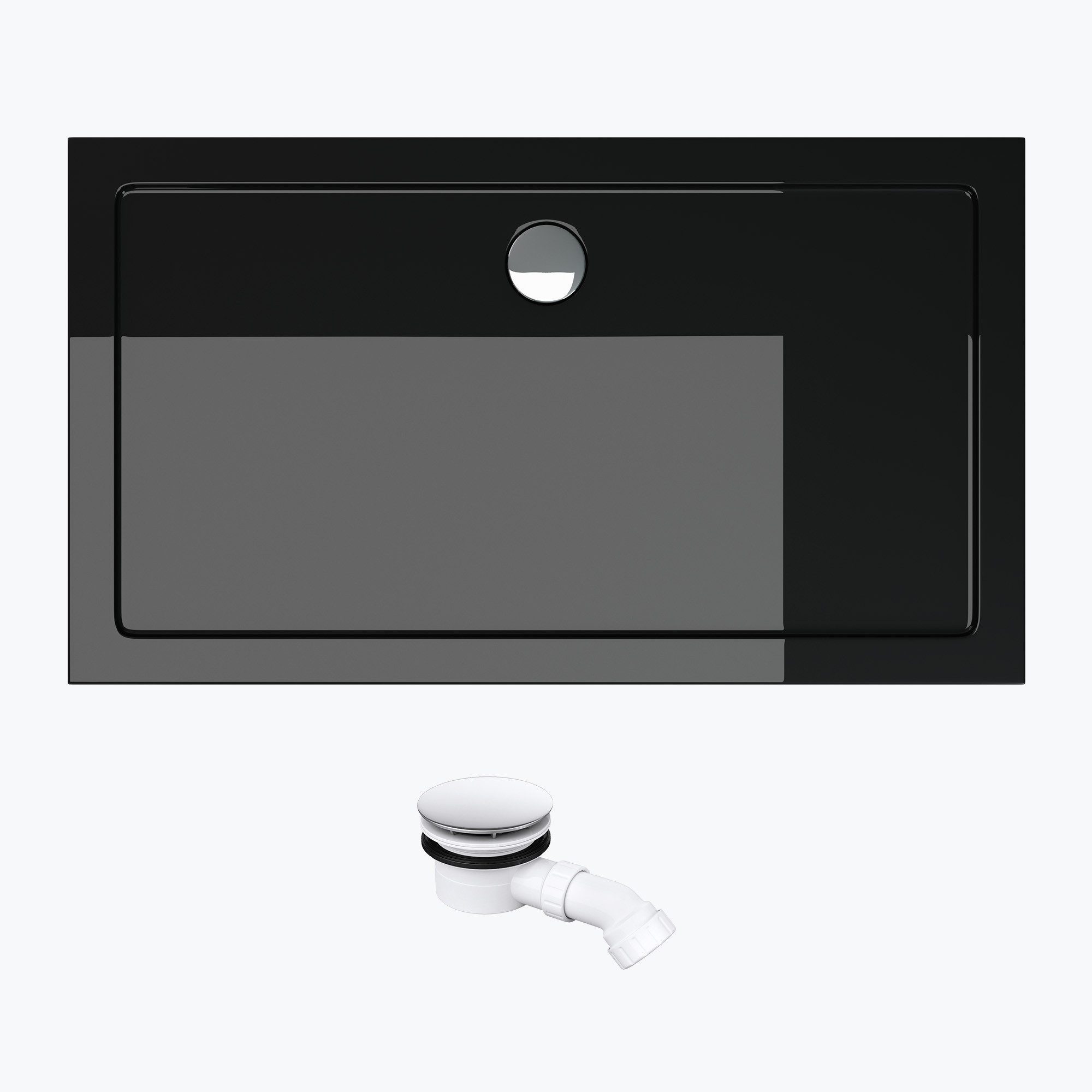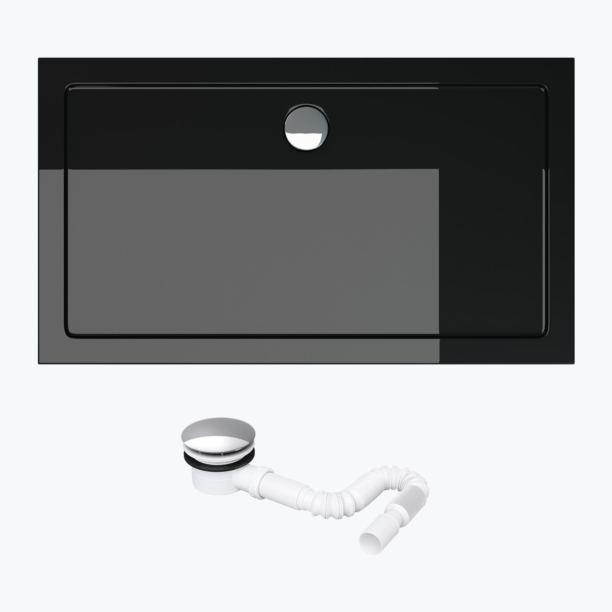 Design Duschtasse in Weiß oder Schwarz | inkl. Ablaufgarnitur AL01/ AL02 mit flexiblen Schlauch