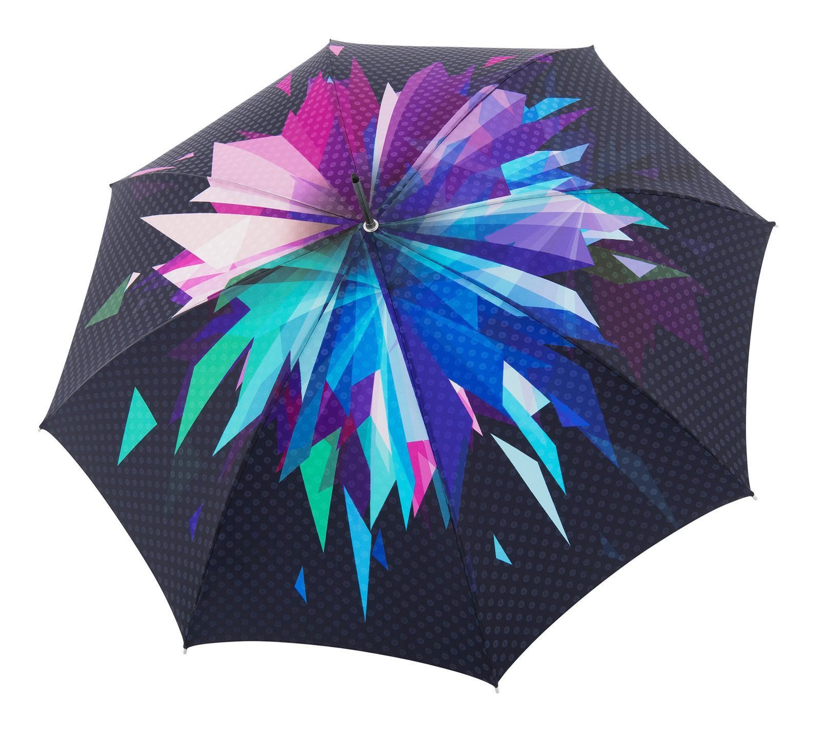 Das Elegance-Gestell der doppler Manufaktur verfügt über ein klassisches, lang bewährtes doppler Automatikgestell, welches den Schirm besonders stabil macht. Der formschöne und hochwertige Regenschirm verfügt über einen automatischen Öffnungsmechanismus und lässt den Regenschirm bequem per Knopfdruck öffnen. Der Schirmgriff aus Holz wird zum Ende flach abgeschliffen und ist besonders elegant. Zeitlos und elegant sind auch unsere edel bedruckte und somit besonders hochwertige Bohème-Stoffe. Ein Meisterwerk in Vollendung!