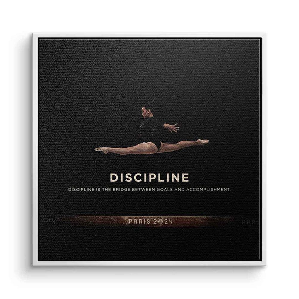 DOTCOMCANVAS® Leinwandbild Discipline #Turnen - Quadrat Edition, Leinwandbild Discipline Motivation Spruch Kunstdruck Wandbild