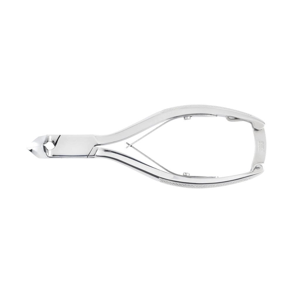 Heißgeschmiedeter Stahl, sorgfältig gehärtet, fein geschliffen, einzeln geprüft und nachschleifbar. Oberfläche vernickelt, durchgesteckt, mit Doppelfeder.