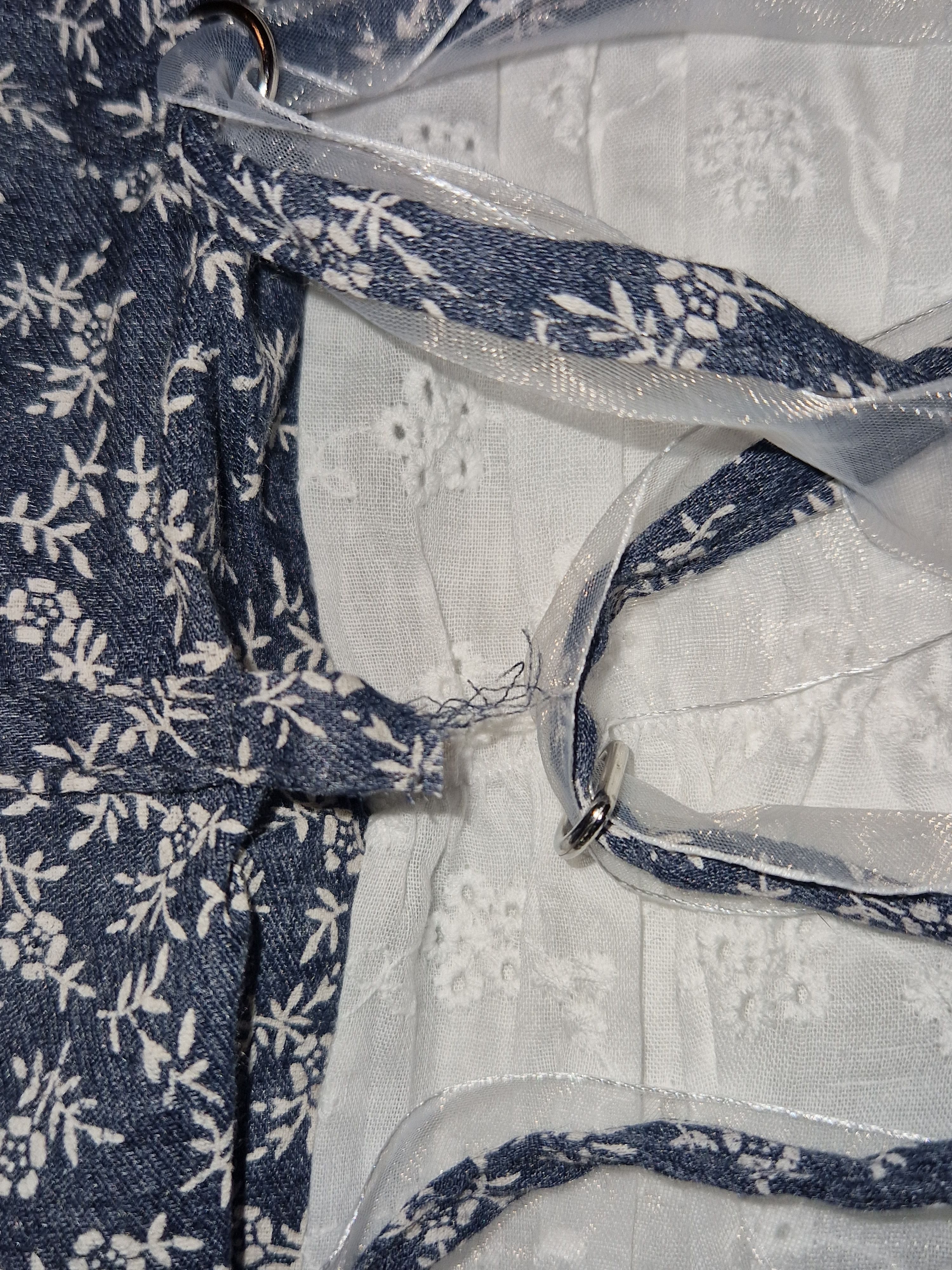 Ein echtes Highlight ist die reizvolle Frontpartie mit Schnürung, die für eine schöne Taillierung sorgt und das traditionelle Design perfekt abrundet. Die seitlich verlaufenden Stoffeinsätze sind farblich abgesetzt und mit unzähligen Blumen verziert, was der Bluse eine besonders verspielte Optik verleiht. Das Blumenmuster zieht sich harmonisch durch das gesamte Design und verleiht der Bluse einen Hauch von ländlicher Romantik.
