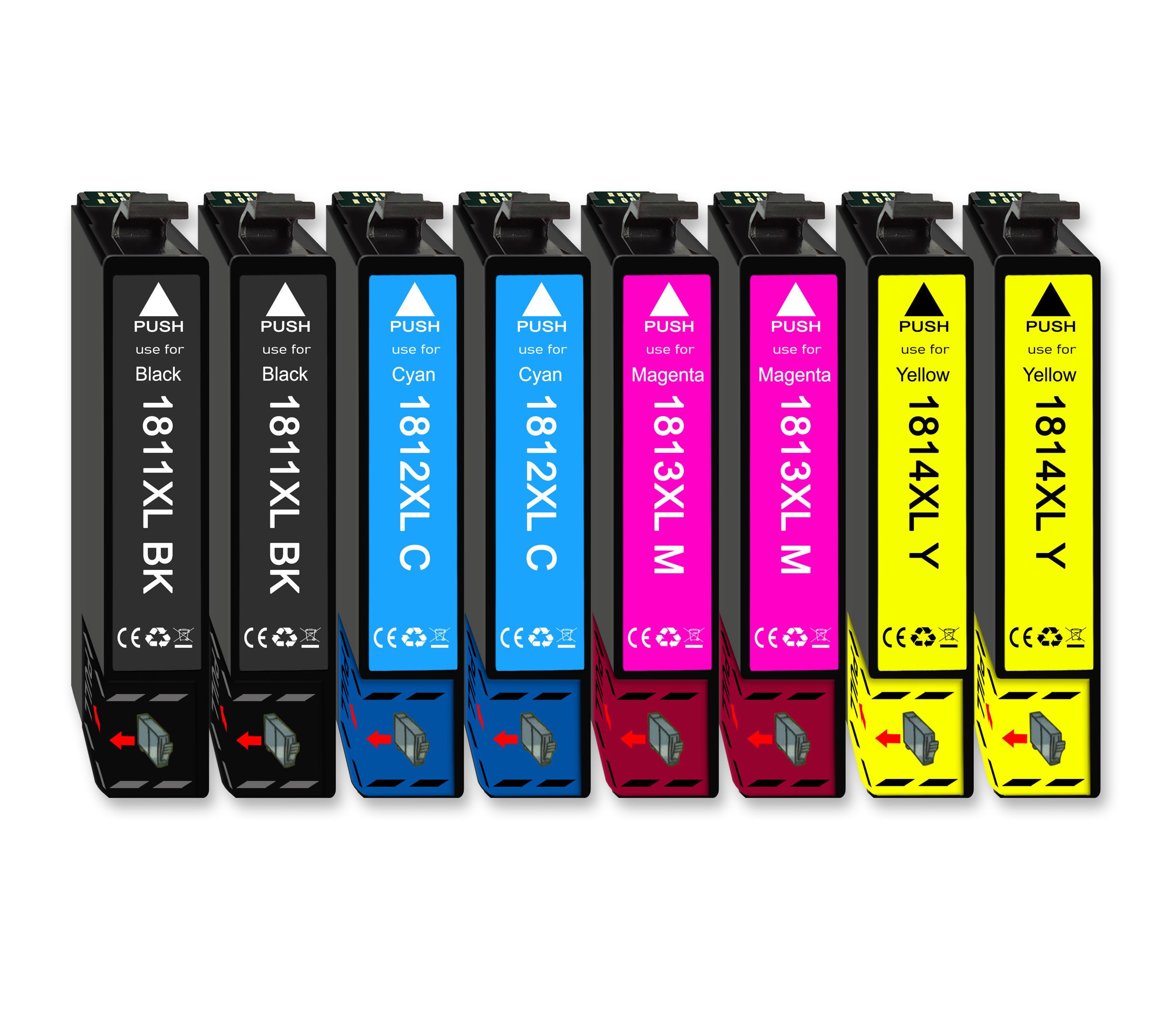 Das Set enthält Patronen für Epson 18 XL in den Farben Schwarz, Cyan, Magenta und Gelb mit einer hohen Kapazität von 18ml in Schwarz und je 15ml in Cyan, Magenta und Yellow. Im Vergleich zur Standardgröße mit der Bezeichnung Epson 18 Multipack Schwarz / Cyan / Magenta / Gelb (C13T18064010) bedeutet dies eine höhere Reichweite und selteneres Auswechseln der Patronen. Dies spart nicht nur Geld, sondern schont auch die Umwelt.
