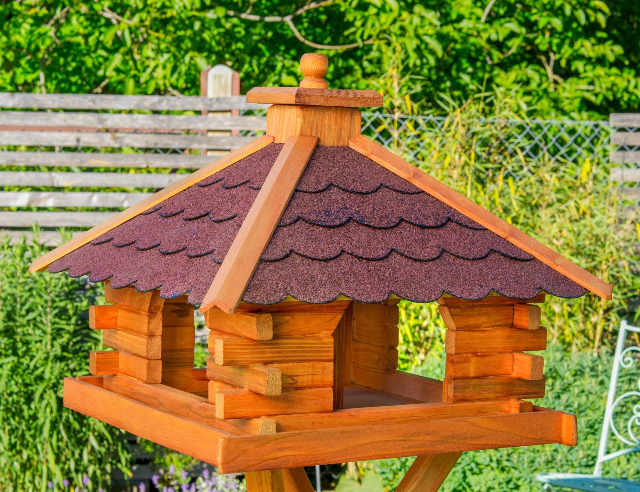 Das Futterhaus ist bereits vollständig mit Holzschutzmittel behandelt.