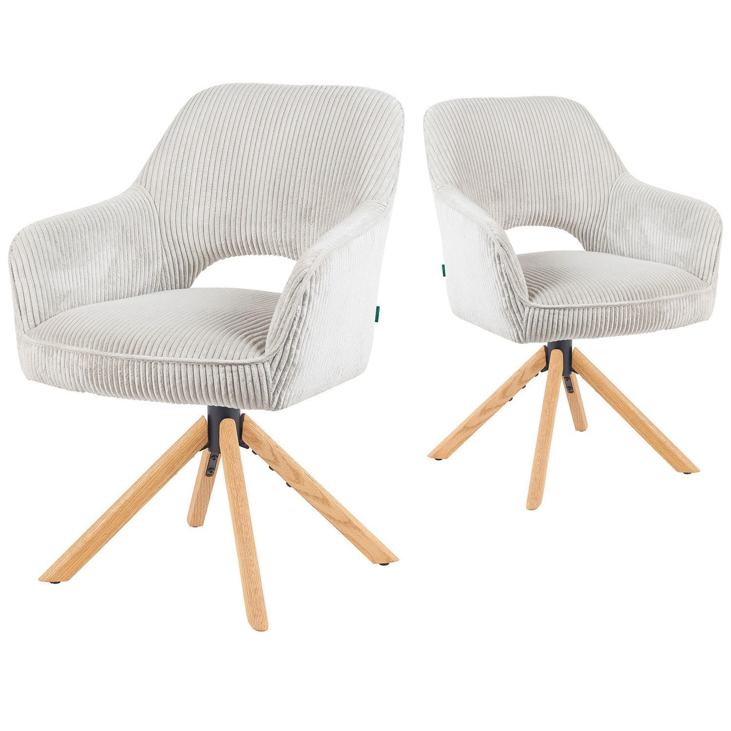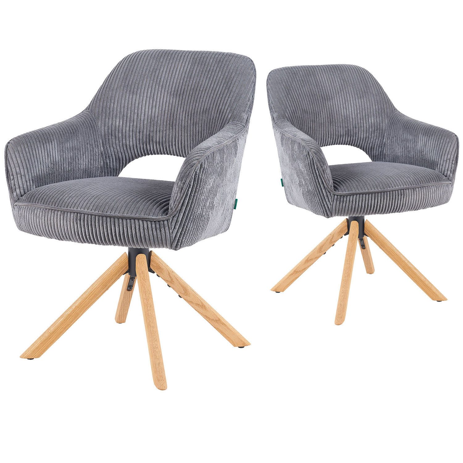 Der Esszimmerstuhl Mika-Lara von DUBI MÖBEL verbindet modernes Design, hohen Sitzkomfort und innovative Funktionalität. Die besondere 360°-Drehfunktion mit Rückstellmechanismus sorgt dafür, dass der Stuhl nach jeder Drehbewegung automatisch in seine Ausgangsposition zurückkehrt – praktisch, elegant und ideal für gesellige Runden am Esstisch. Das massive Eichenholzgestell, natur geölt, verleiht dem Stuhl nicht nur Stabilität und Langlebigkeit, sondern bringt auch eine warme, natürliche Ausstrahlung in den Wohnraum. Die ergonomisch geformte Sitzschale mit Armlehnen sowie die komfortable Polsterung garantieren angenehmes Sitzen über viele Stunden hinweg. Der Bezug aus hochwertiger Microfaser ist in zwei Varianten erhältlich: als moderne Cord-Optik oder in glatter Struktur. Mit fünf attraktiven Farbvarianten – Hellblau, Hellgrau, Grau, Rosa und Grün – lässt sich Mika-Lara optimal in jedes Wohnkonzept integrieren. Ob im Esszimmer, in der Küche oder als stilvolles Highlight im Wohnbereich: Der Esszimmerstuhl Mika-Lara überzeugt durch Qualität, Komfort und zeitloses Design.