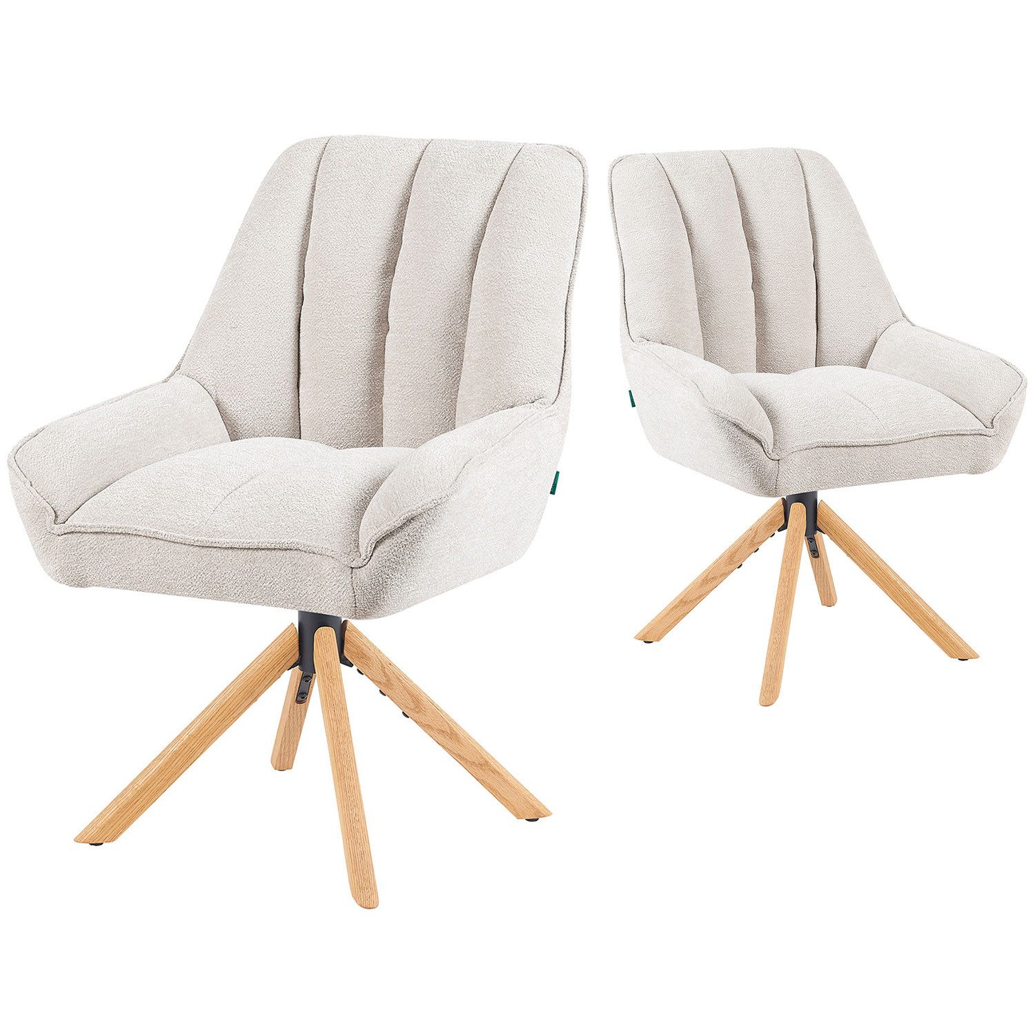Der Esszimmerstuhl Mika-Leon vereint modernes Design mit durchdachter Funktionalität. Die markante Steppung der Sitzfläche und Rückenlehne verleiht dem Stuhl eine elegante Optik, während die weiche Polsterung für höchsten Sitzkomfort sorgt – ideal für lange Abende am Esstisch. Dank der 360° Drehfunktion mit Rückstellmechanik kehrt der Stuhl automatisch in seine Ausgangsposition zurück – praktisch und ordentlich für jede Tafelrunde. Der strapazierfähige Microfaserbezug ist pflegeleicht, langlebig und in den stilvollen Farben Grau und Creme erhältlich. Das massive, geölte Eichengestell sorgt nicht nur für Stabilität und Belastbarkeit, sondern bringt durch seine natürliche Maserung auch Wärme und Eleganz in Ihr Esszimmer. Mit Mika-Leon holen Sie sich einen zeitlosen und funktionalen Premiumstuhl in Ihr Zuhause, der Komfort, Design und Qualität perfekt verbindet.