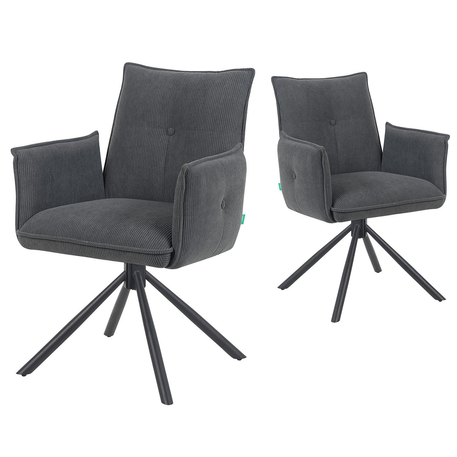 Der Esszimmerstuhl Mika-Nevio verbindet modernes Design mit höchstem Sitzkomfort. Der weiche Cordstoffbezug sorgt für eine stilvolle Optik und angenehmes Sitzgefühl. Dank der 360° Drehfunktion genießen Sie maximale Bewegungsfreiheit, während das stabile Metallgestell in pulverbeschichtetem Matt-Schwarz für Standfestigkeit und eine elegante Note sorgt. Die gepolsterte Sitzfläche mit Armlehnen bietet Komfort für lange Abende am Esstisch oder im Homeoffice. Wählen Sie aus den Farben Creme, Grün, Anthrazit oder Blumen-Design und setzen Sie einen besonderen Akzent in Ihrem Wohn- oder Essbereich.