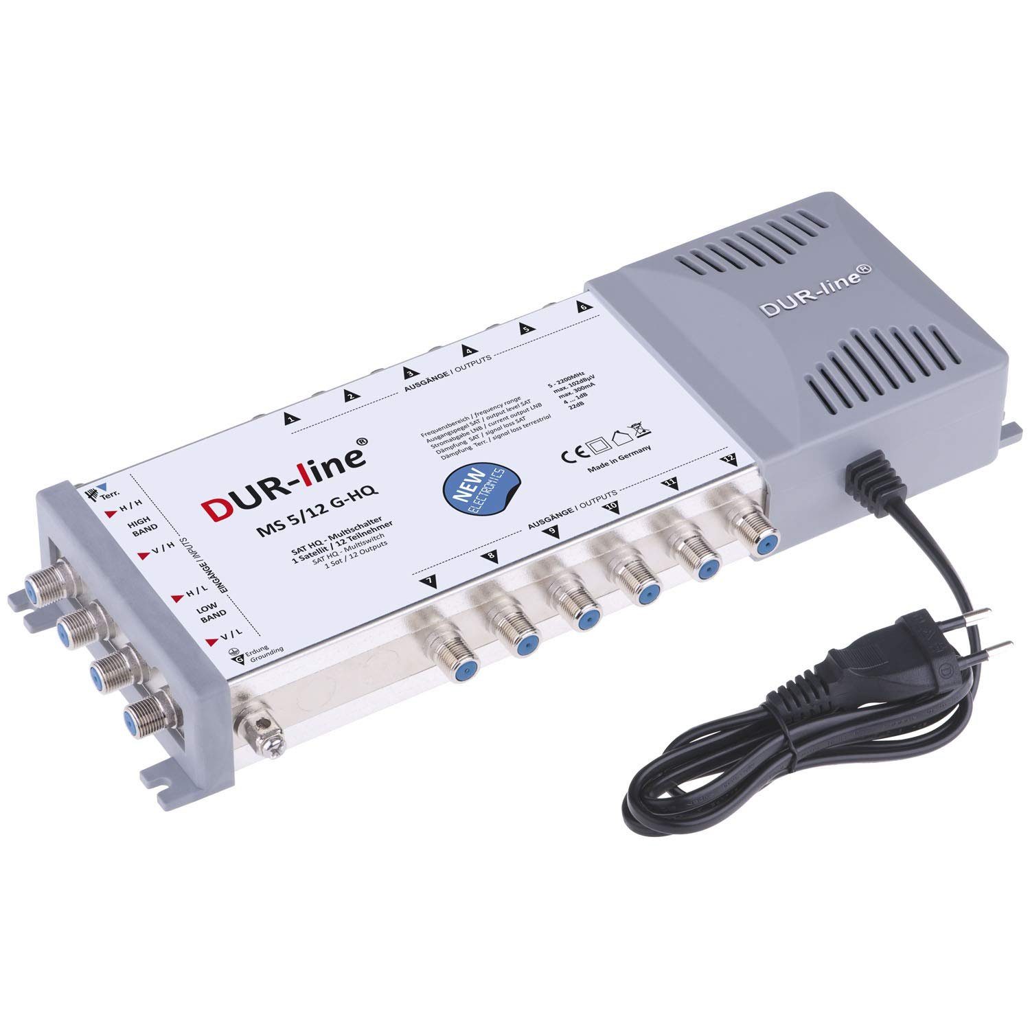 DUR-line MS 5/12 G-HQ Multischalter - SAT für 12 Teilnehmer/TV - mit stromspar Netzteil - Made in Germany - Multiswitch [Digital, HDTV, FullHD, 4K, UHD]
