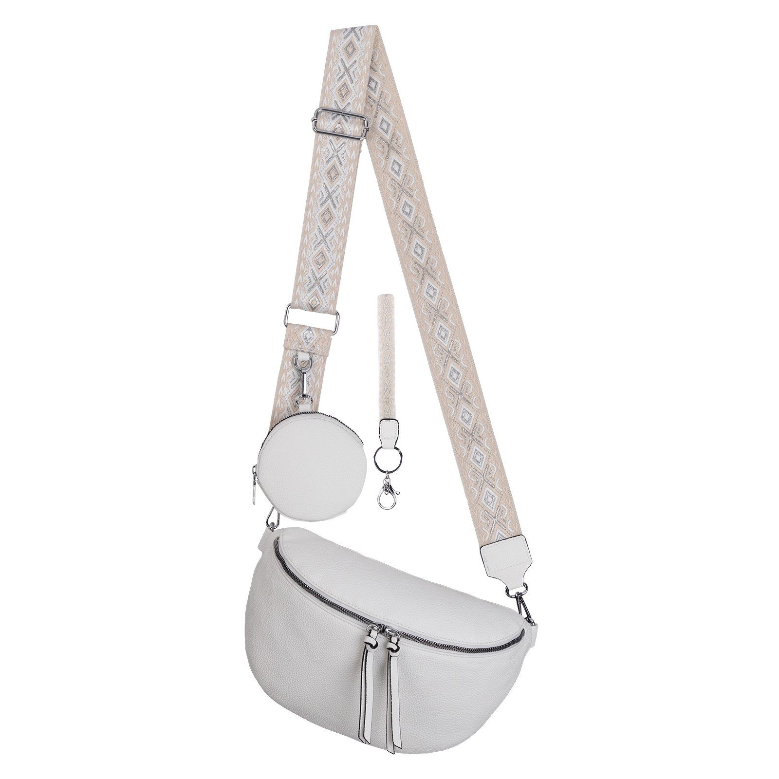 Ein großes Hauptfach mit Doppelreißverschluss , im inneren ein Reißverschlussfach und zwei Einsteckfächer Auf der Rückseite ein Reißverschlussfach Verstellbarer, abnehmbarer Trageriemen: (85 cm - 135 cm) inklusive Karabinerhaken Trageriemen: 5 cm Breit Gemustert Trageriemen: Kombination aus Kunstleder und Stoff