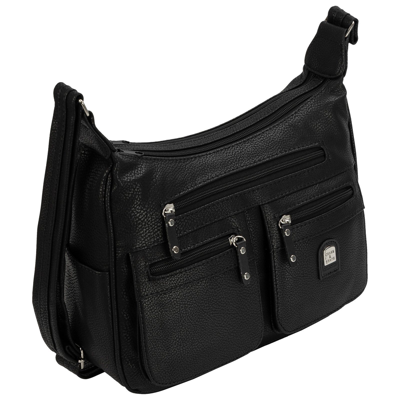 Zwei große Hauptfächer mit Reißverschluss Im Hauptfächer ein kleineres Reißverschlussfach und zwei Einsteckfächer Auf der Vorderseite Reißverschlussfach und zwei aufgesetzte Reißverschlussfächer Ein Reißverschlussfach auf der Rückseite Seitlich zwei Einsteckfächer (jeweils ein Einsteckfach auf den Seite) Längenverstellbarer Trageriemen (Riemenlänge ca. 65 cm - 120 cm) Trageriemen: 3 cm Breit hochwertiges, wasserabweisendes und pflegeleichtes Material Maximaler Tragekomfort Optimal für Freizeit, Schule, Arbeit und Reisen