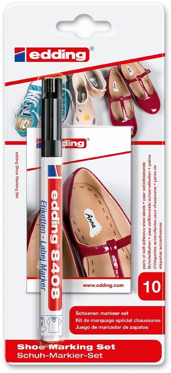 • edding 8408/1 BL Schuh-Markier-Set, inkl. 20 Schuhetiketten zum Einkleben