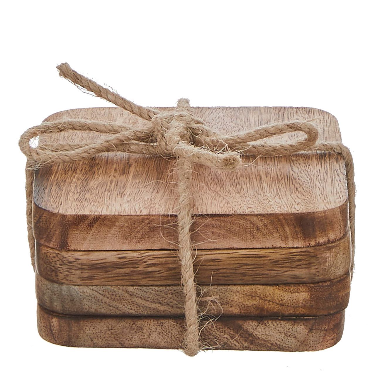 Sie sind nicht nur schön anzuschauen, sondern auch sehr praktisch! Die Duko Untersetzer von Mica Decorations verhindern Ringe auf jedem Beistelltisch, Couchtisch oder Esstisch. Die Untersetzer für Gläser sind aus FSC®-zertifiziertem Mangoholz gefertigt und haben eine warme, naturbraune Farbe. Das natürliche Material macht jedes Exemplar zu einem Unikat. Der Artikel wird mit vier Untersetzern geliefert, die jeweils ca. L10 x B10 x H1,2 cm messen.