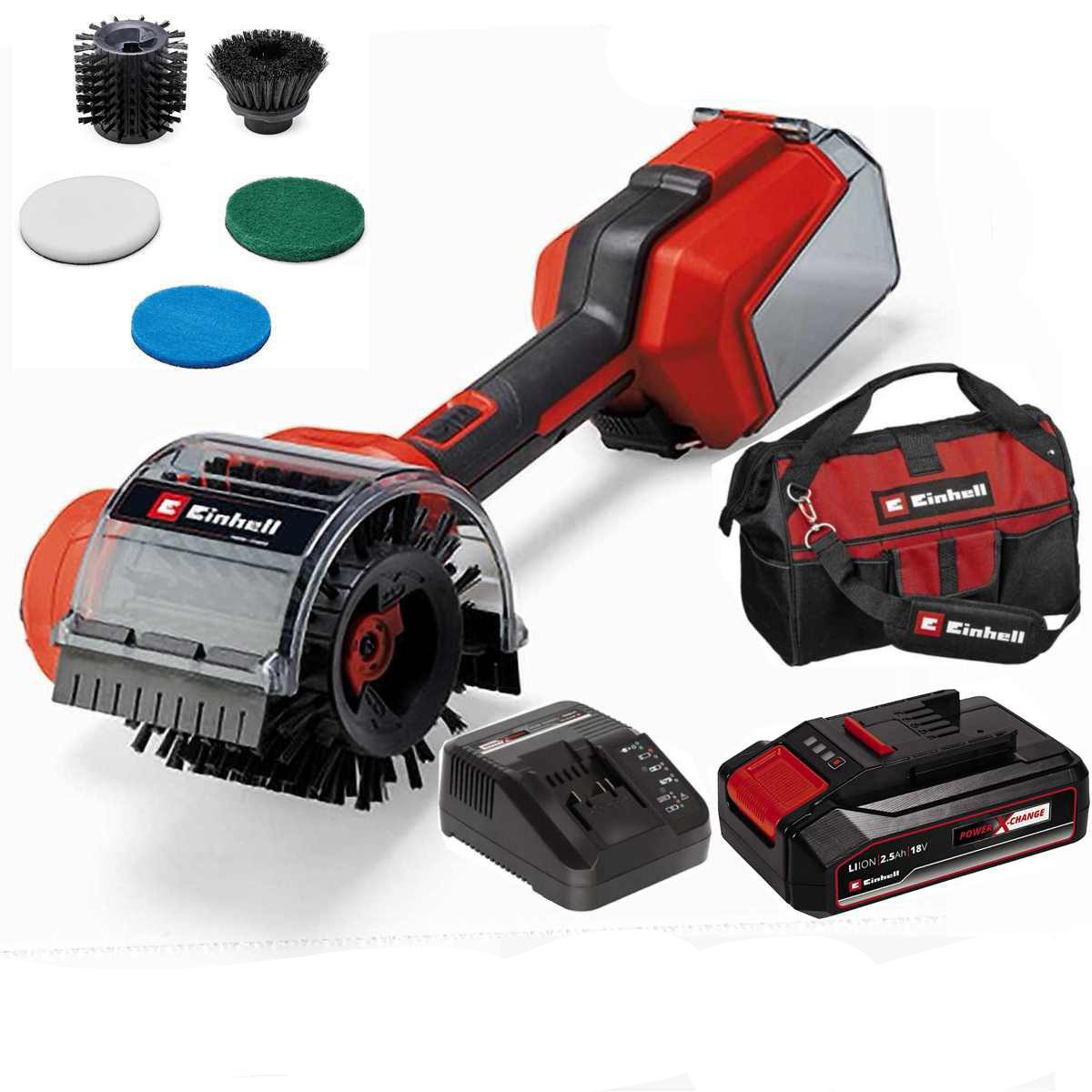 Einhell Akku-Oberflächenbürste PICOBELLA 18/90 Power X-Change (18 V, kabellose Reinigungsbürste, Spritzwasserschutz, inkl. 2x Bürste, 3x Reinigungspad, Wandhalterung, mit Akku 2.5 Ah + Ladegerät + Tasche