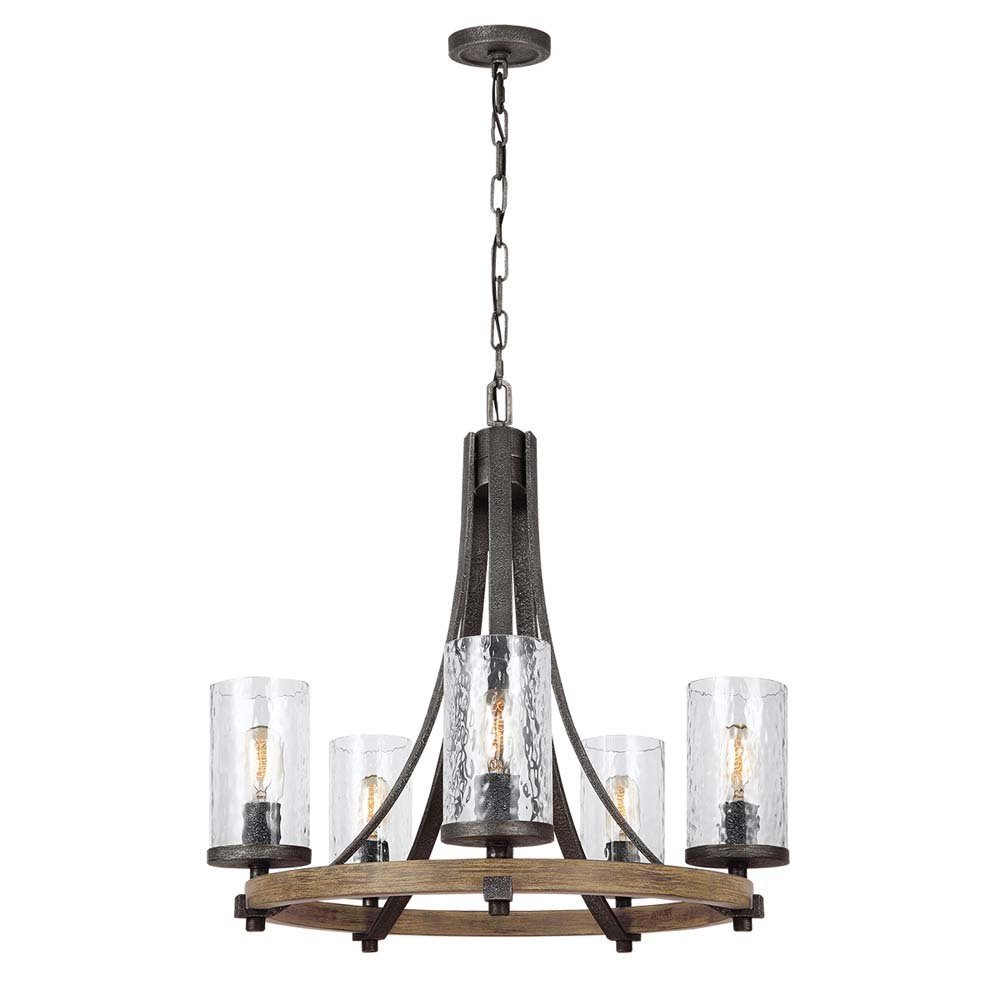 Die Angelo-Kollektion ist sowohl von rustikalen als auch von industriellen Designs beeinflusst und zelebriert die Schönheit der rauen Unvollkommenheit. Die dicken, gewellten Glasschirme ergänzen die zweifarbige Oberfläche von Distressed Weathered Oak und eine reich strukturierte Oberfläche aus schiefergrauem Metall.