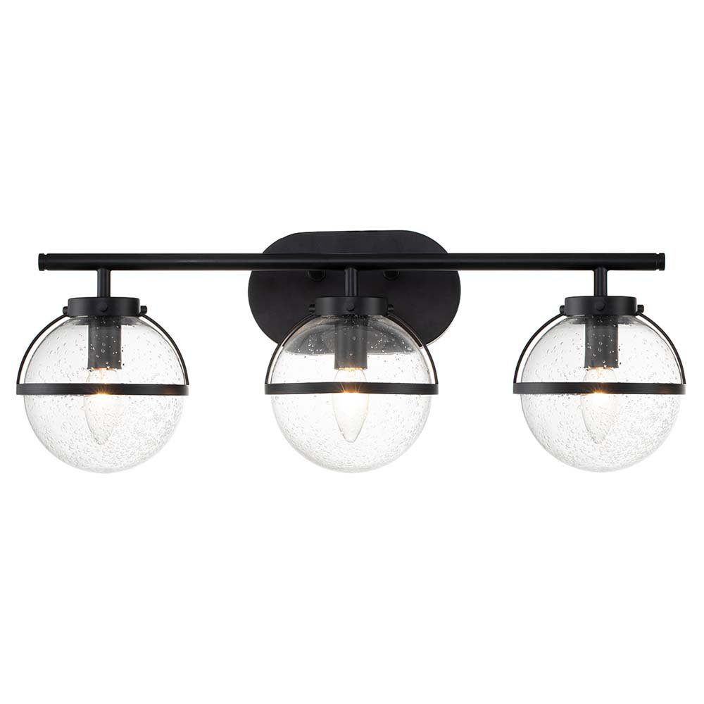 Das Hollis 3LT -Wandlicht spiegelt die von Art Deco inspirierten Lichter der 1920er Jahre wider. In Schwarz fertig und aus Stahl mit klarem Säugetglas hergestellt. IP44 bewertet.