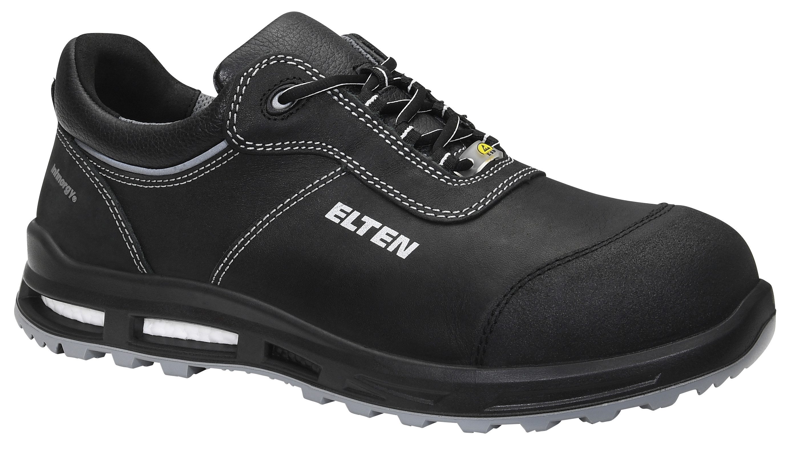 ELTEN - GEMACHT AUS LEIDENSCHAFT - 1910 in Uedem am Niederrhein von Johann van Elten gegründet, brachte seine Vision den Durchbruch für den modernen Sicherheitsschuh, wie wir ihn heute kennen: die revolutionäre Erfindung des ersten ELTEN Arbeitsschuhes aus Leder statt wie damals üblich aus Holz. Heute gehört ELTEN zu den führenden Herstellern von hochwertigen Sicherheits- und Berufsschuhen in Europa mit einer Jahresproduktion von über 3 Mio. Paar, produziert in Uedem am Niederrhein. Aus dieser Tradition heraus stehen für uns der Mensch, sein Schutz und seine Sicherheit im Mittelpunkt unserer Arbeit. === ELTEN Sicherheitshalbschuh, REACTION XXT Low ESD S3S, 729701, ELTEN WELLMAXX, Rindleder, Atmungsaktives Textilfutter, Geschlossene, gepolsterte Lasche, Ganzflächige Einlegesohle ESD PRO black, PU/PU Sohle WELLMAXX TRAINERS, EN ISO 20345:2022 S3S FO/SR/SC, Form A